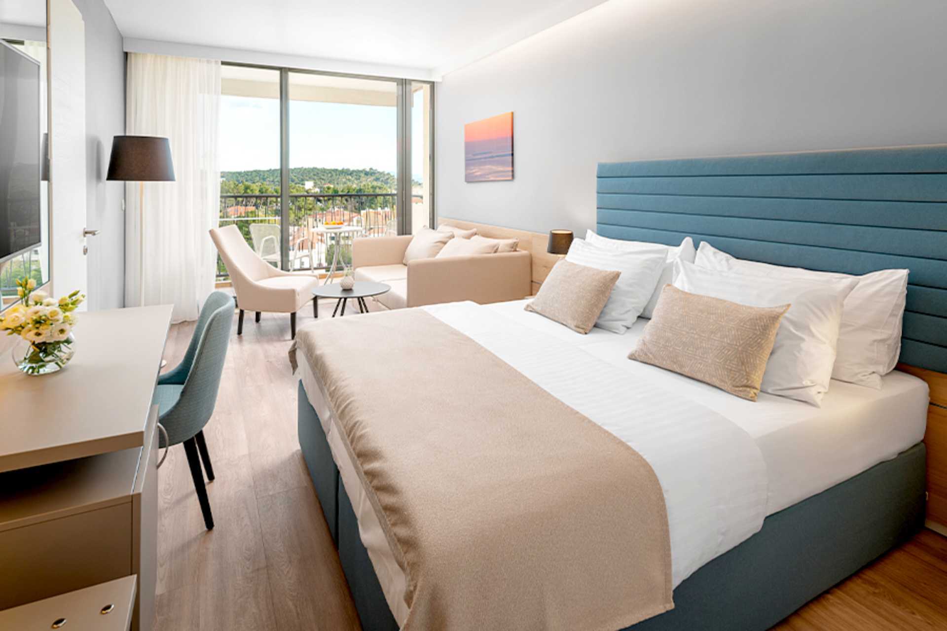 Superior-huone, joissa on erikokoinen parveke ja rajoitettu merinäköala. Parivuode tai kaksi yhden hengen sänkyä. Lisävuodemahdollisuus vuodesohvasta. Maksuton wifi, ilmastointi ja tallelokero. Minibaari. Vedenkeitin, kahvia ja teetä. Tv kansainvälisillä kanavilla. Hiustenkuivain. Amme ja wc. Siivous 7 krt/viikko. Superior-huoneiden ikäraja on 14 vuotta.
