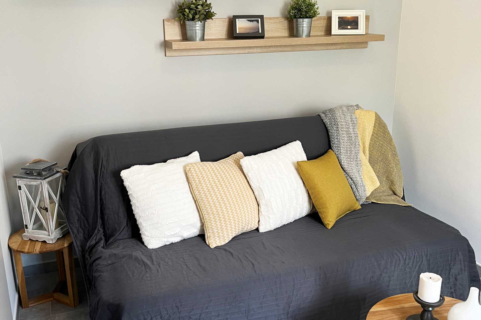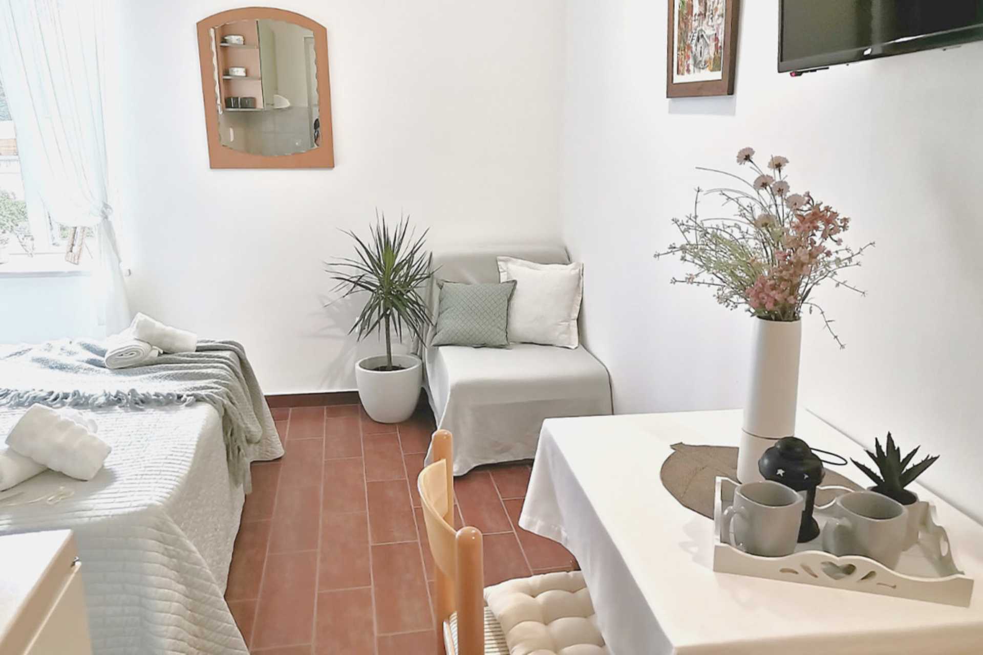 Kaksio, jossa on poreamme ja sauna sekä aurinkotuoleilla varustettu terassi. Makuuhuone sekä yhdistetty olohuone ja minikeittiö. Parivuode, lisävuoteen mahdollisuus vuodesohvaan. Minikeittiö, jossa keittolevyt, vedenkeitin, kahvinkeitin, leivänpaahdin, jääkaappi ja yksinkertainen keittiövarustus. Maksuton wifi, ilmastointi ja tallelokero. Tv kansainvälisillä kanavilla. Pyykinpesukone asunnossa. Hiustenkuivain. Kylpyhuoneessa suihku ja wc. Siivous 7 krt/viikko.