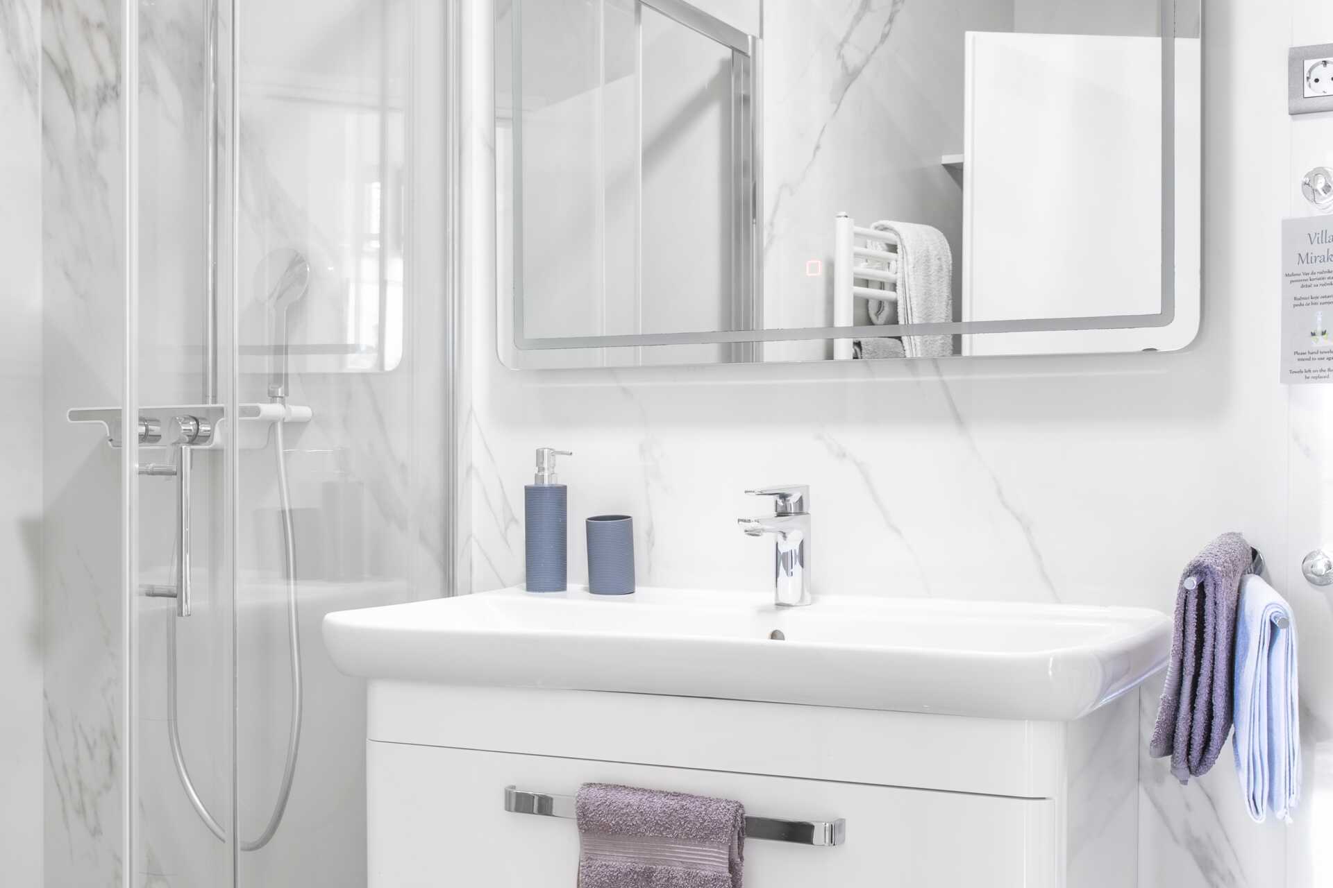 Kaksio parvekkeella, osa merelle päin tai hyvin rajoitettu merinäköala. Makuuhuone sekä yhdistetty olohuone ja minikeittiö. Parivuode. Lisävuodemahdollisuus vuodesohvasta. Minikeittiö, jossa on keittolevyt, uuni, jääkaappi, vedenkeitin, leivänpaahdin ja peruskeittiövälineet. Maksuton wifi, ilmastointi ja tallelokero. Tv. Suihku ja wc. Siivous 7 krt/viikko.