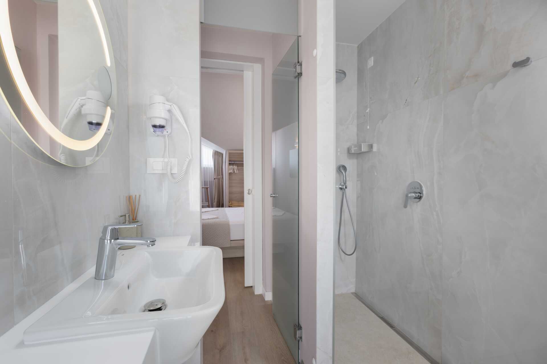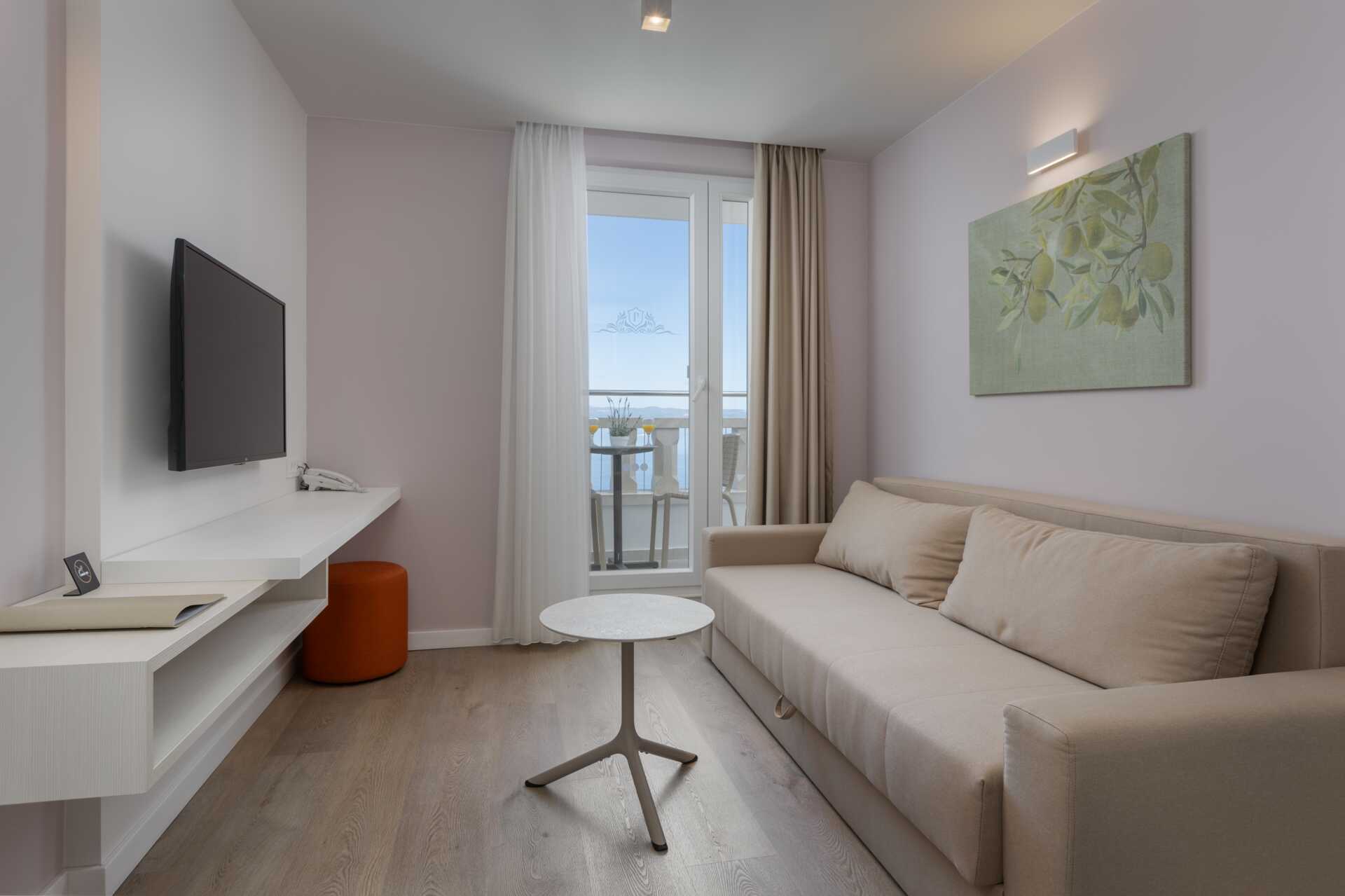 Junior-sviittejä, joissa on erikokoisia parvekkeita ja merinäköala. Makuuhuone ja olohuone, jossa on pieni keittiö. Joissakin junior-sviiteissä on portaat. Parivuode. Lisävuodemahdollisuus vuodesohvasta. Pieni keittiötila, jossa jääkaappi, vedenkeitin, kahvinkeitin ja yksinkertainen keittiövarustus. Keittolevyt puuttuvat. Maksuton wifi, ilmastointi ja tallelokero. Tv kansainvälisillä kanavilla. Hiustenkuivain. Kylpyhuoneessa suihku ja wc. Siivous 7 krt/viikko.