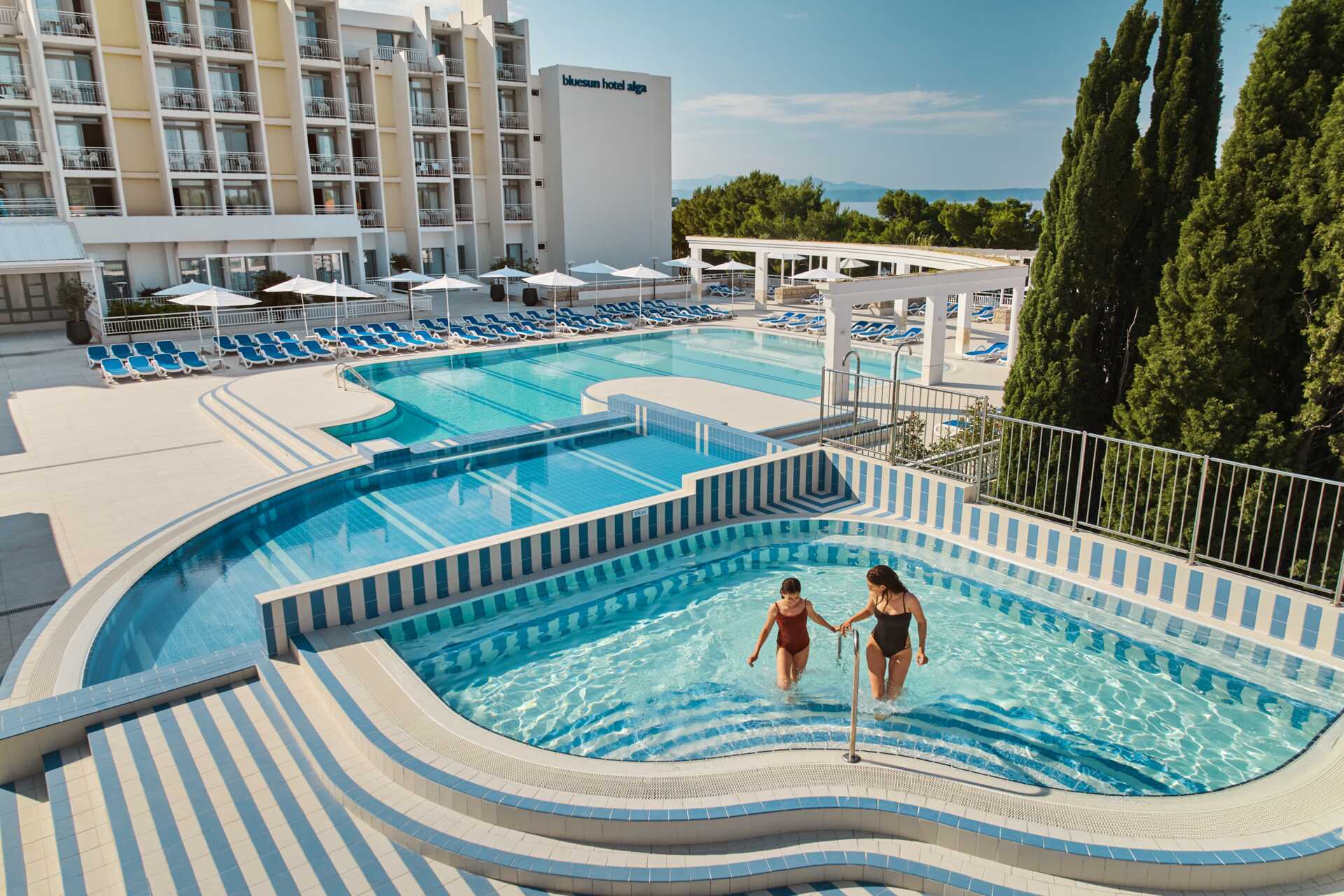 Bluesun Alga on suuri ja hieno hotelli hyvällä sijainnilla rantapromenadin vieressä. Allasalueella on erillinen lastenallas. Maksuttomia aurinkotuoleja ja -varjoja allasalueella. Allasbaari. Rannalla aurinkotuoleja ja -varjoja lisämaksusta.