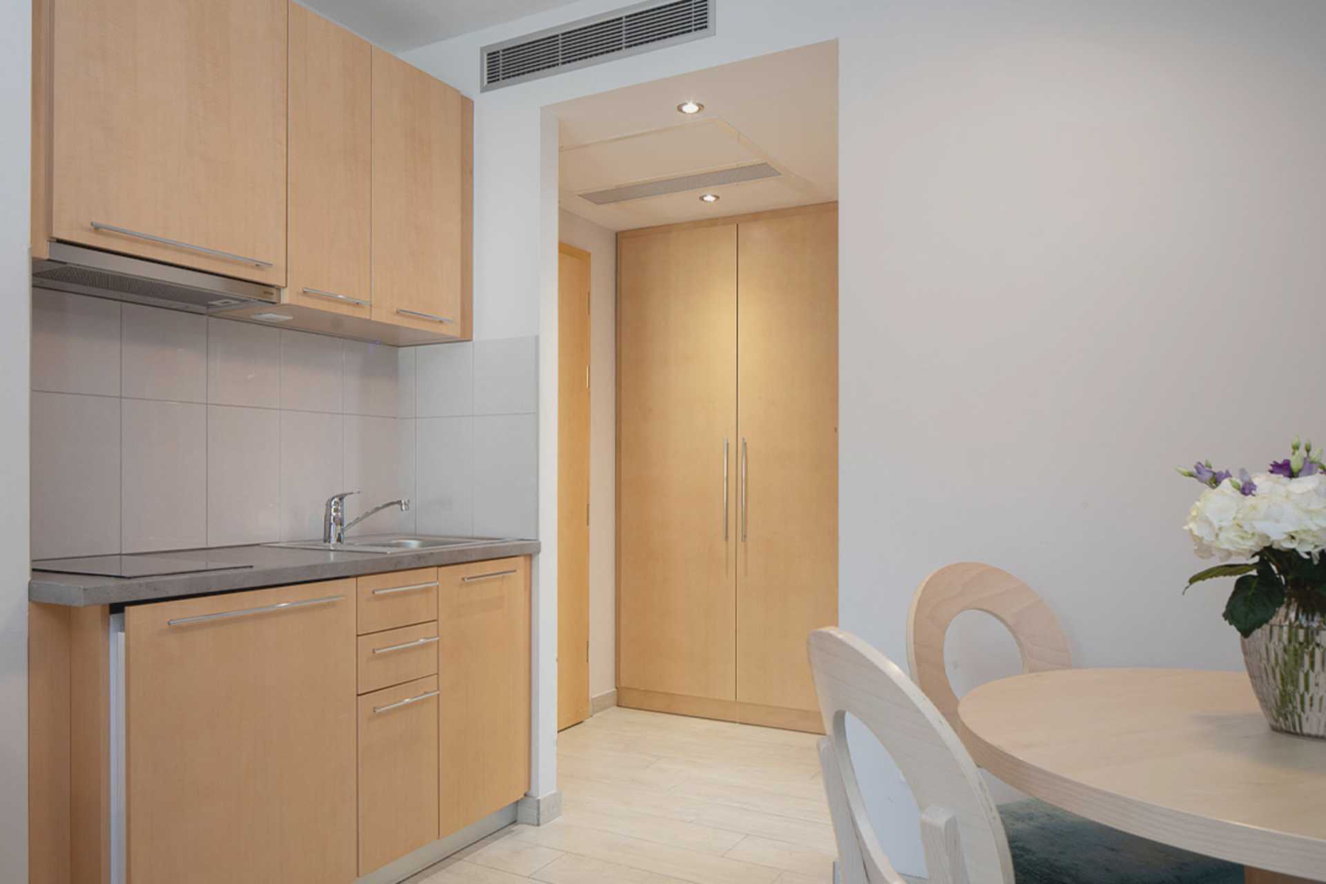Yksiö maaparvekkeella tai parvekkeella, joissakin parvekkeissa on rajoitettu merinäköala. Asunnoissa on erilaisia suunnitteluratkaisuja, ja ylimmän kerroksen asunnoissa on viistokatot ja parvekkeet voivat olla erikokoisia. Yhdistetty makuuhuone ja minikeittiö. Parivuode. Lisävuodemahdollisuus vuodesohvasta. Minikeittiö, jossa keittolevyt, jääkaappi, mikroaaltouuni, vedenkeitin ja peruskeittiövälineet. Wifi, ilmastointi ja tallelokero. Tv kansainvälisillä kanavilla. Hiustenkuivain. Kylpytakit ja tossut. Kylpyamme tai suihku ja wc. Siivous 7 krt/viikko.