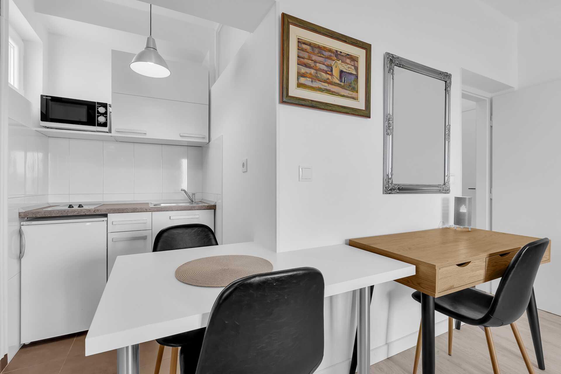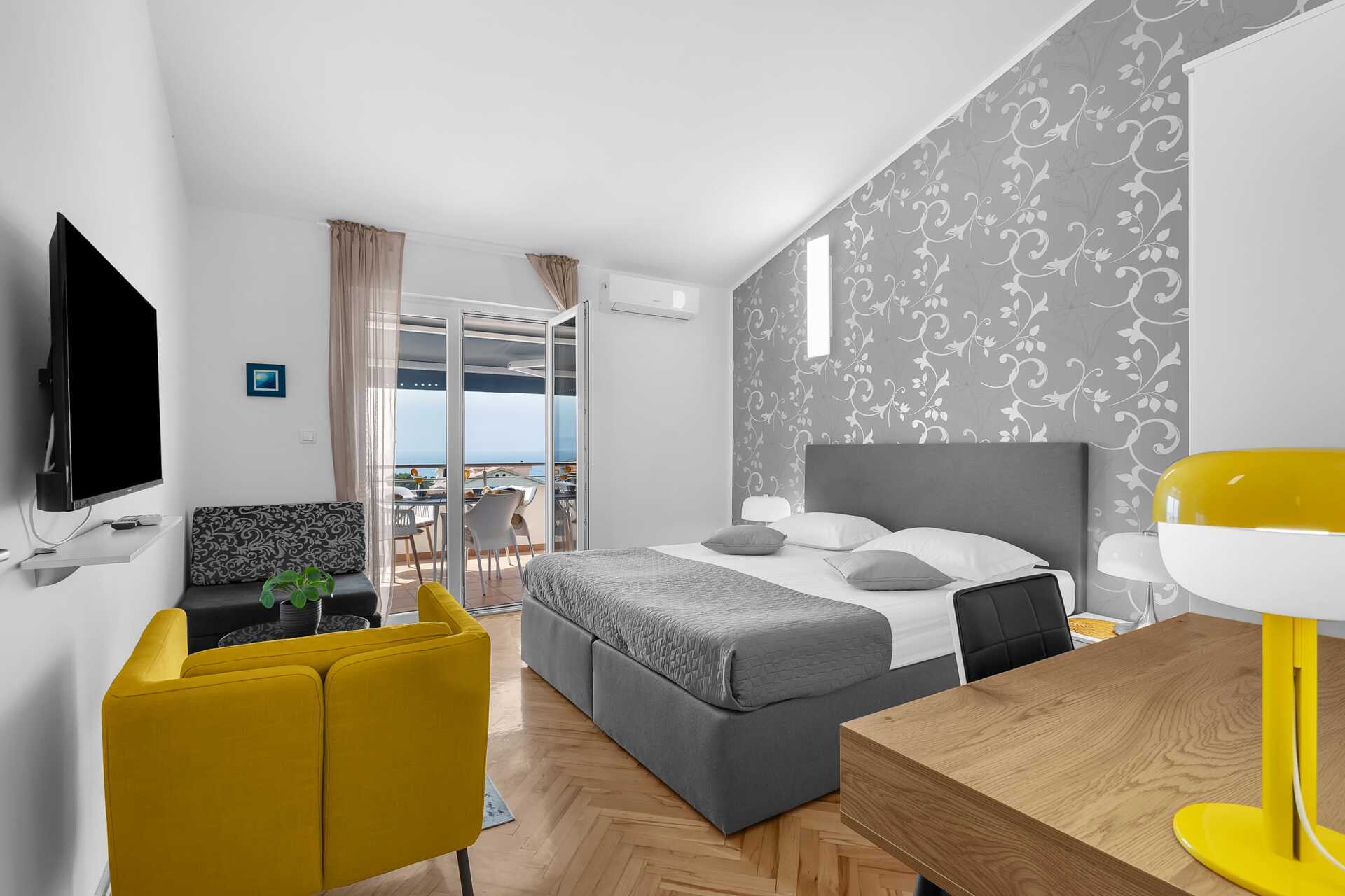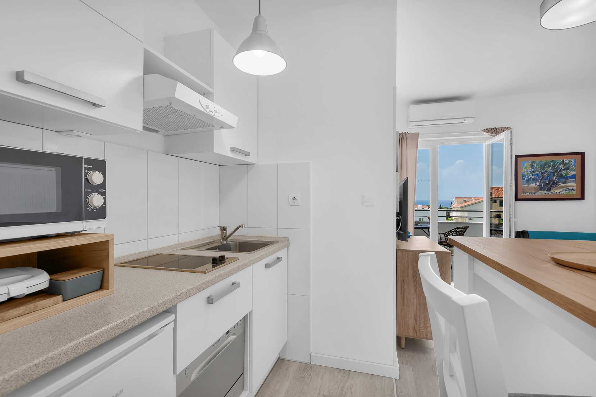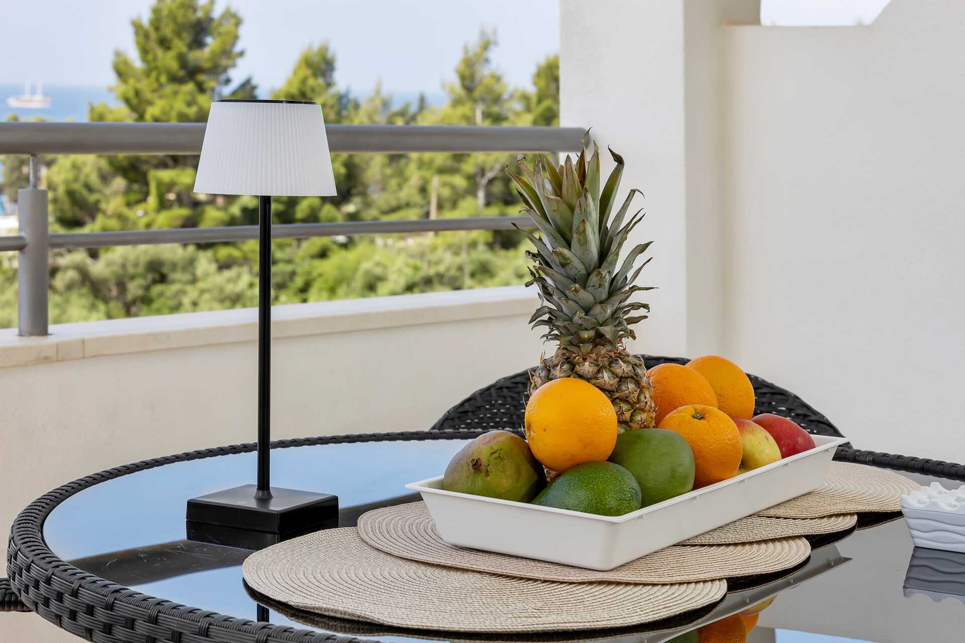 Yksiö jossa on parveke, osassa näkymä merelle päin. Makuuhuone yhdistetty minikeittiöön. Minikeittiössä jääkaappi, kahvinkeitin, mikro ja yksinkertainen keittiövarustus. Parivuode tai kaksi erillistä sänkyä. Wifi, ilmastointi ja tallelokero sisältyvät hintaan. Tv kansainvälisillä kanavilla. Kylpyhuone kylpyamme/ suihku ja wc. Siivous 6 krt/viikko.