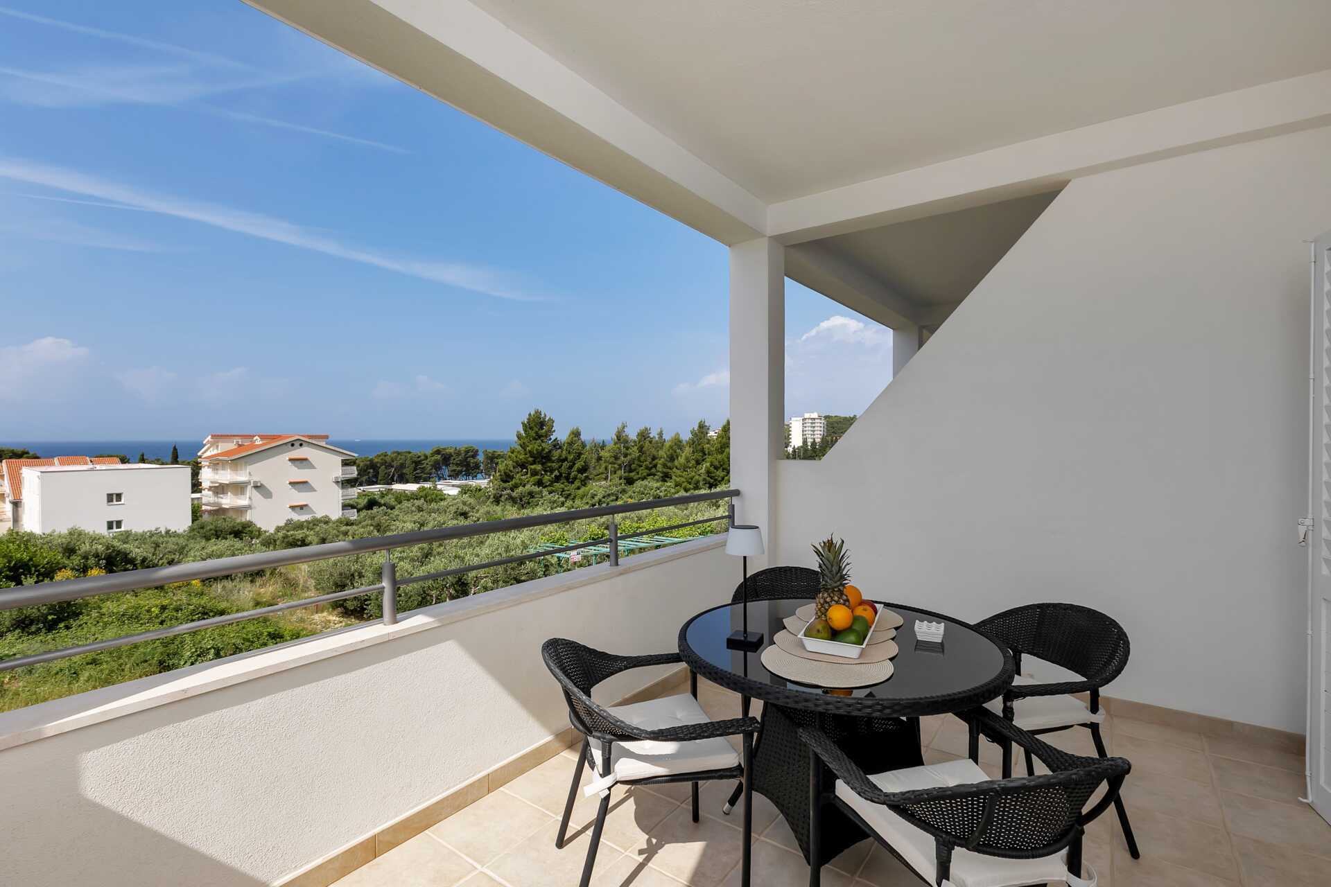 Kaksio jossa on parveke, osassa näkymä merelle päin. Makuuhuone sekä yhdistetty olohuone ja minikeittiö. Minikeittiössä jääkaappi, kahvinkeitin ja yksinkertainen keittiövarustus. Parivuode tai kaksi erillistä sänkyä. Lisävuodemahdollisuus. Wifi, ilmastointi ja tallelokero sisältyvät hintaan. Tv kansainvälisillä kanavilla. Kylpyhuoneessa kylpyamme/suihku ja wc. Siivous 6 krt/viikko.