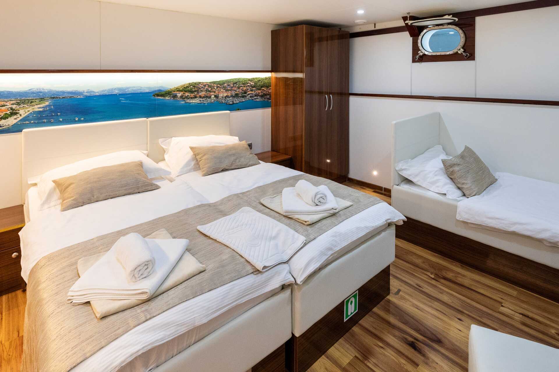 Laivalla on 18-21 hyttiä, joissa kaikissa on joko parivuode tai kaksi erillistä vuodetta. Tv kansainvälisillä kanavilla. 220 volttia. Maksuton ilmastointi ja tallelokero. Hiustenkuivain. Moderni kylpyhuone suihkulla ja wc:llä. Vaatekaappi ja tavaratila sängyn alla. Hytit vaihtelevat sisustukseltaan ja kooltaan, mutta ne ovat kooltaan noin 10–15 neliömetriä. Kansien 2–3 ikkuna on hieman tuuletusikkunaa suurempi. Pyyhkeet ja liinavaatteet vaihdetaan kerran keskellä viikkoa.