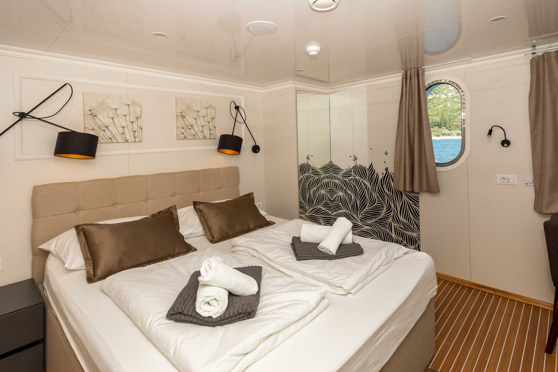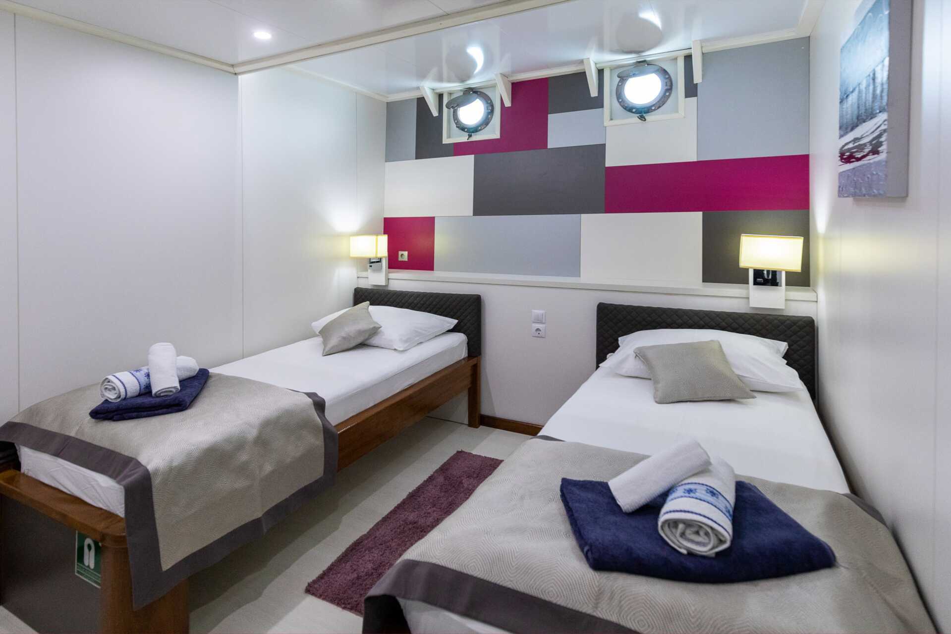 Laivalla on 18-21 hyttiä, joissa kaikissa on joko parivuode tai kaksi erillistä vuodetta. Tv kansainvälisillä kanavilla. 220 volttia. Maksuton ilmastointi ja tallelokero. Hiustenkuivain. Moderni kylpyhuone suihkulla ja wc:llä. Vaatekaappi ja tavaratila sängyn alla. Hytit vaihtelevat sisustukseltaan ja kooltaan, noin 10–15 neliömetriä. Kannen 1 hyteissä on pieni tuuletusikkuna. Pyyhkeet ja liinavaatteet vaihdetaan kerran keskellä viikkoa.