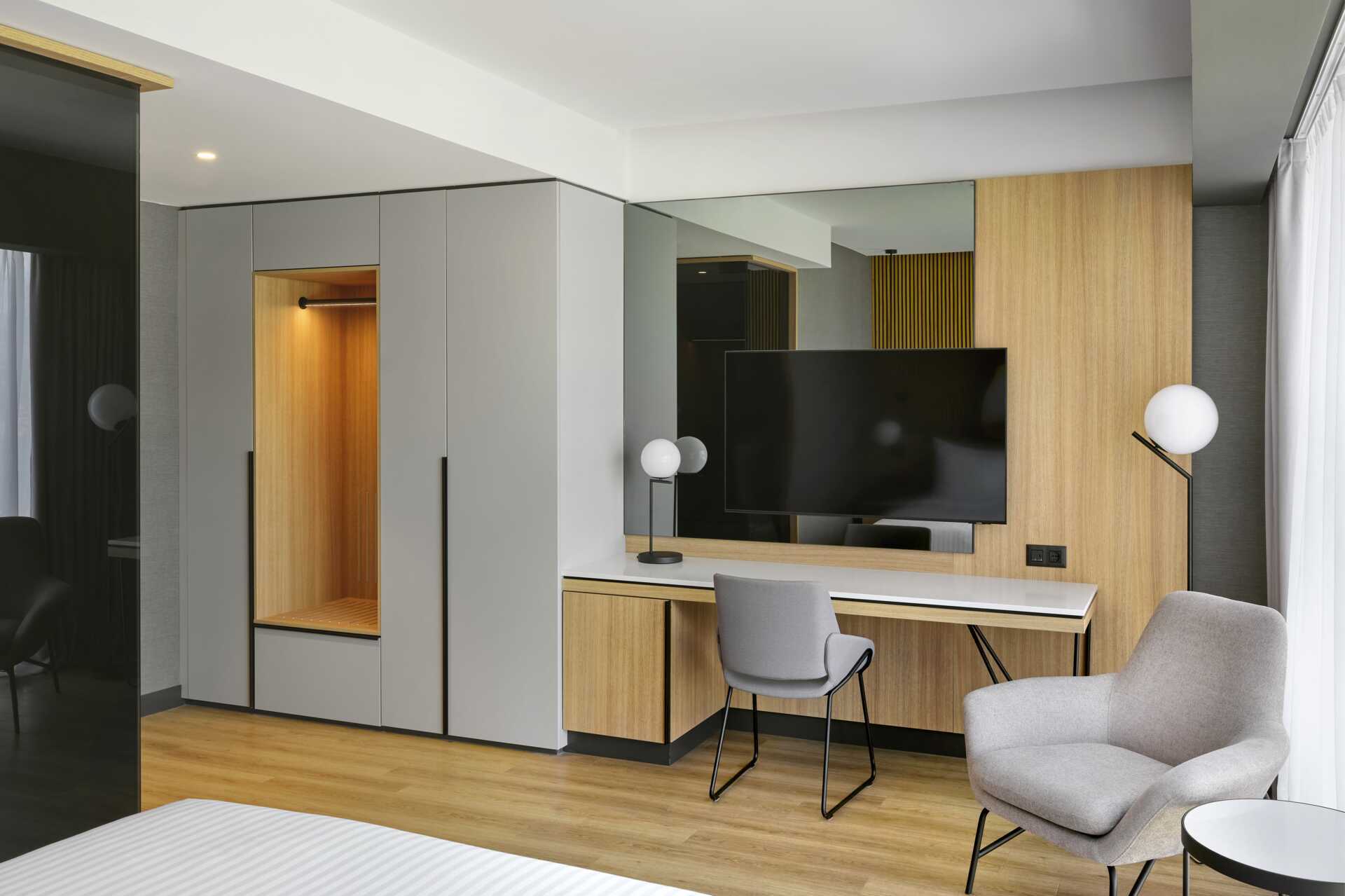 Executive-huone, ei ulkotilaa. Parivuode tai parivuode ja yhden hengen vuode. Mahdollisuus lisävuoteeseen olemassa olevissa vuoteissa. Maksuton wifi, ilmastointi ja tallelokero. Jääkaappi. Tv kansainvälisillä kanavilla. Kylpytakit. Hiustenkuivain. Kylpyhuoneessa kylpyamme tai suihku ja wc. Siivous 7 krt/viikko.