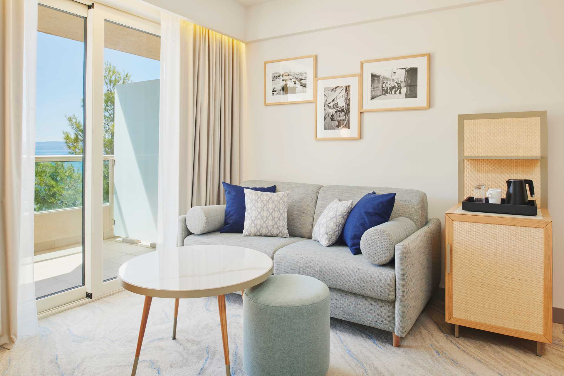 Deluxe-huone parvekkeella, osassa merinäköala. Parivuode tai kaksi yhden hengen sänkyä. Huoneissa, joissa on parivuode, on lisävuodemahdollisuus vuodesohvasta. Maksuton wifi, ilmastointi ja tallelokero. Pieni jääkaappi, joka voidaan täyttää pyynnöstä ja on saatavilla lisämaksusta. Vedenkeitin, kahvia ja teetä. Tv kansainvälisillä kanavilla. Kokolattiamatto. Kylpytakit ja tossut Hiustenkuivain. Kylpyhuoneessa on kylpyamme ja suihku, joissakin huoneissa on myös erillinen suihku ja wc. Siivous 7 krt/viikko.