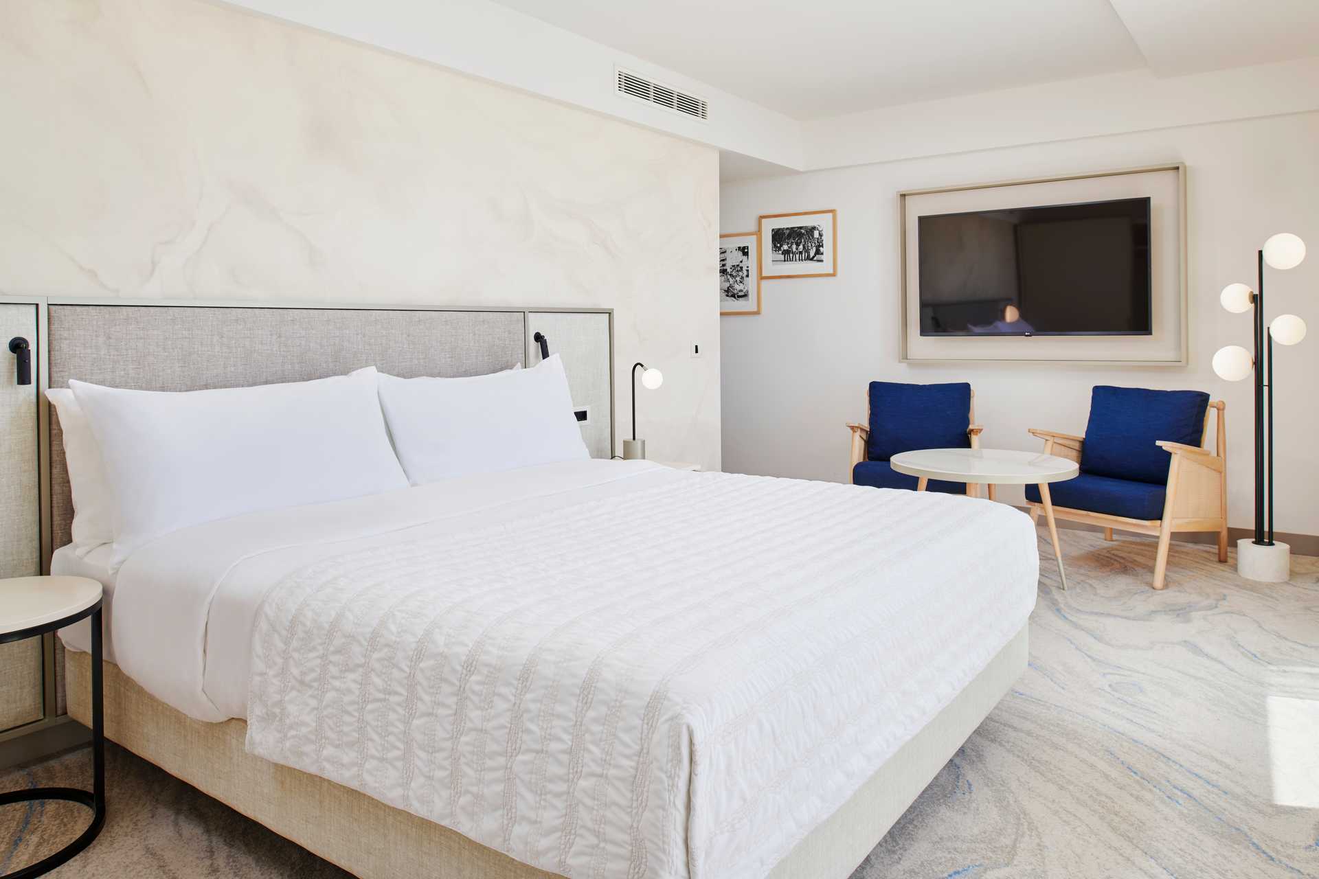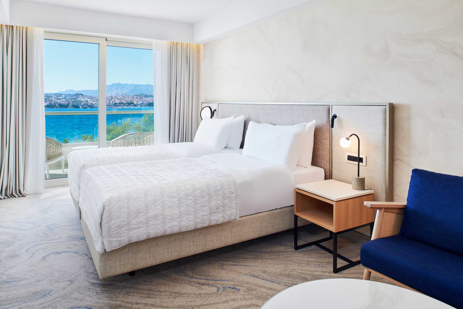 Kahden hengen huone parvekkeella, osassa merinäköala. Parivuode tai kaksi yhden hengen sänkyä. Maksuton wifi, ilmastointi ja tallelokero. Pieni jääkaappi, joka voidaan täyttää pyynnöstä ja on saatavilla lisämaksusta. Vedenkeitin, kahvia ja teetä. Tv kansainvälisillä kanavilla. Kokolattiamatto. Hiustenkuivain. Kylpyhuoneessa on kylpyamme ja suihku, joissakin huoneissa on myös erillinen suihku ja wc. Siivous 7 krt/viikko.