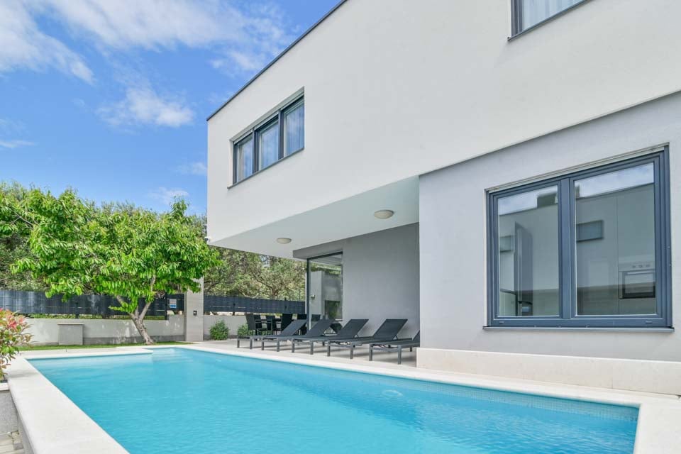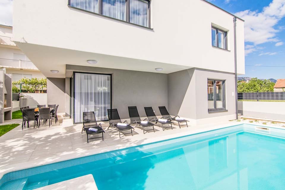 Koe Splitin lumo Villa Silver Sky I:ssä, jossa moderni sisustus kohtaa kodin mukavuudet. Tämä viehättävä huvila tarjoaa useita mukavuuksia, jotka takaavat unohtumattoman loman kaikille vieraille.