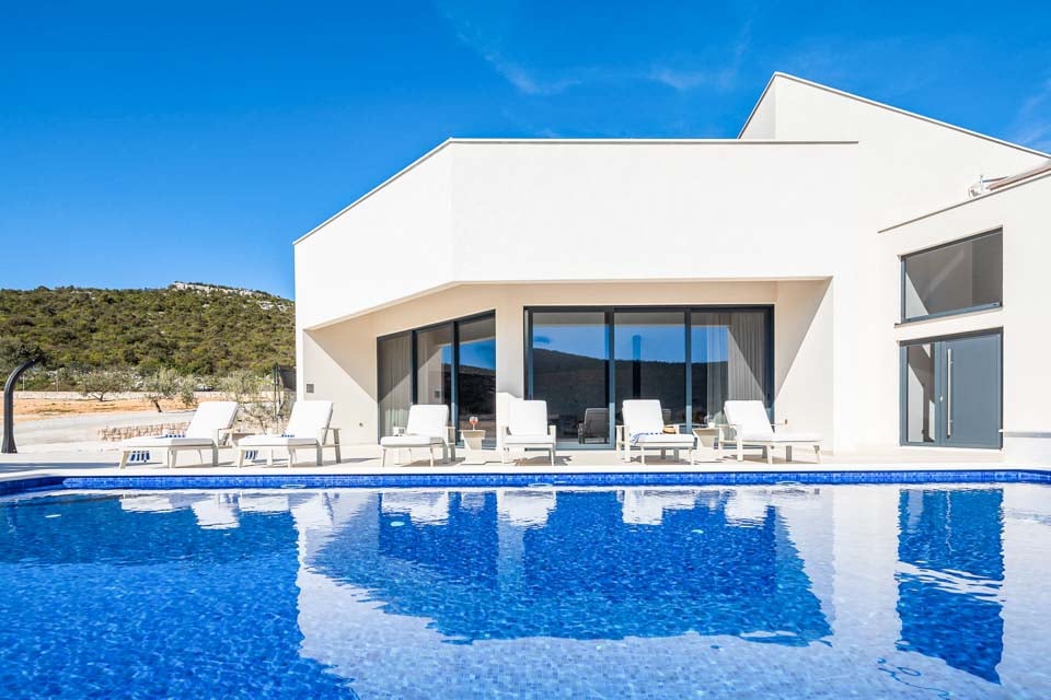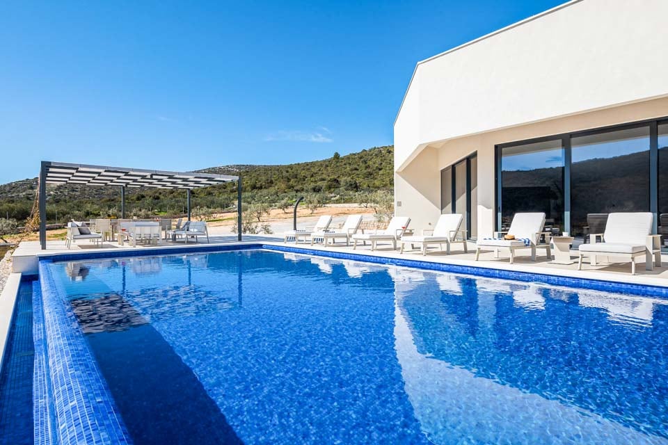 Huvilan tilava ja moderni muotoilu tarjoaa poikkeuksellisen yhdistelmän tyyliä ja toimivuutta, ja siinä on viisi tyylikkäästi sisustettua makuuhuonetta, joista jokaisessa on oma kylpyhuone. Avoin oleskelutila sopii erinomaisesti sekä rentoutumiseen että viihtymiseen, ja sieltä on käynti upealle ulkotilalle.