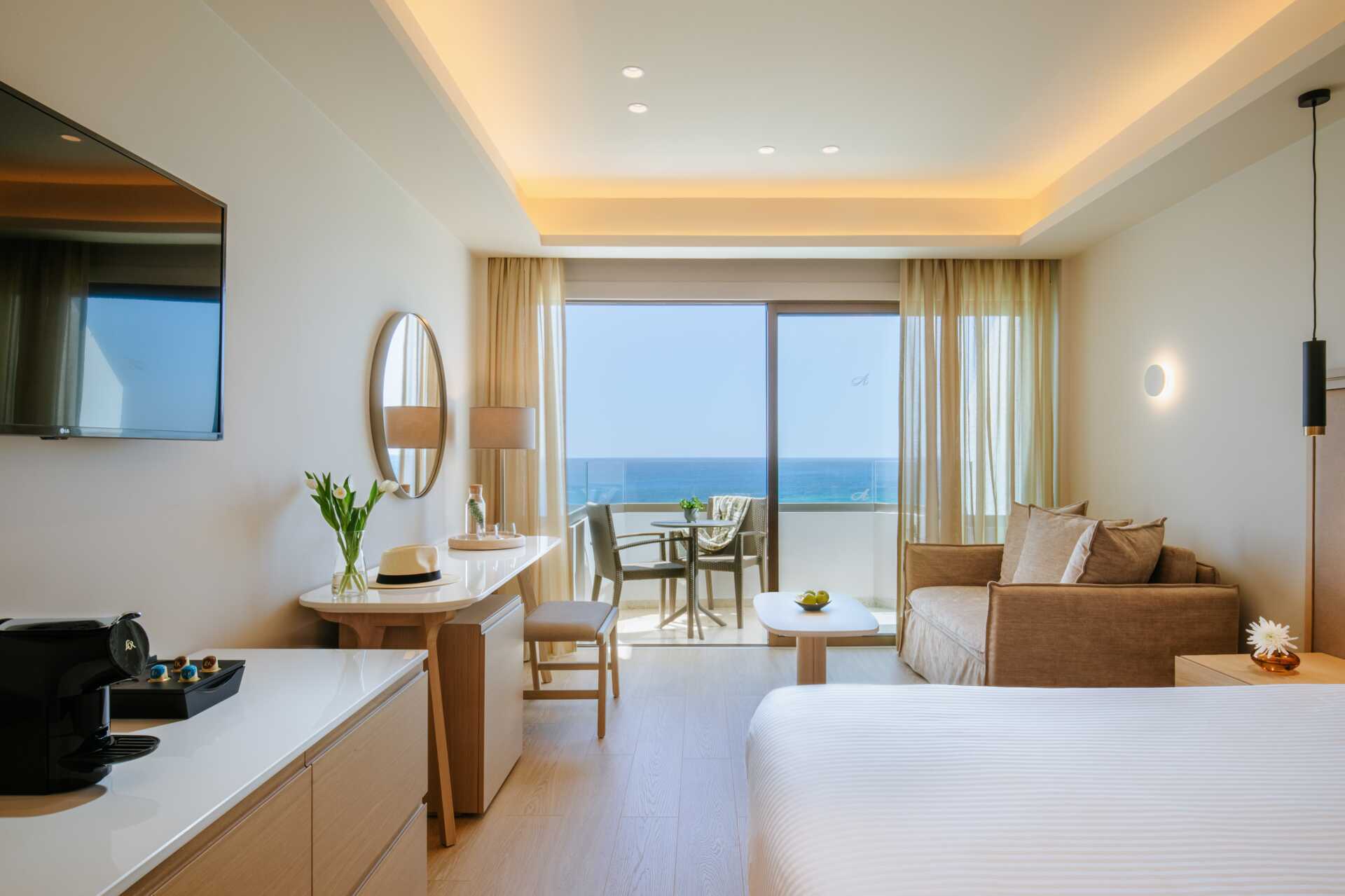 Kahden hengen huoneet parvekkeella, osassa merinäköala ja osassa rajoitettu merinäköala. Parivuode tai kaksi yhden hengen sänkyä. Lisävuodemahdollisuus vuodesohvasta. Maksuton wifi, ilmastointi ja tallelokero. Minibaari. Vedenkeitin, kahvia ja teetä. Espressokone. Tv kansainvälisillä kanavilla. Kylpytakit ja tossut. Hiustenkuivain. Kylpyamme tai suihku ja wc. Siivous 7 krt/viikko.
