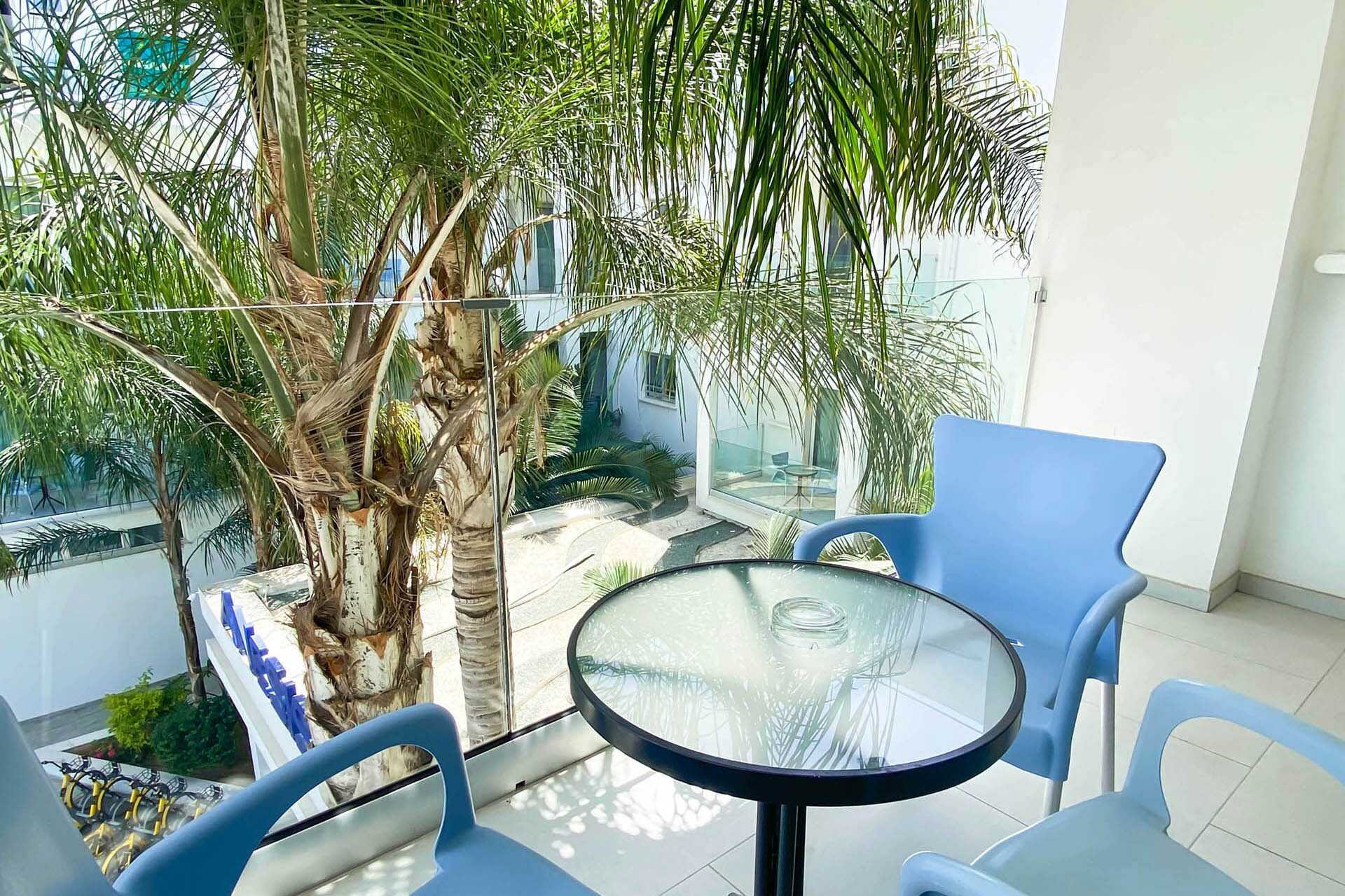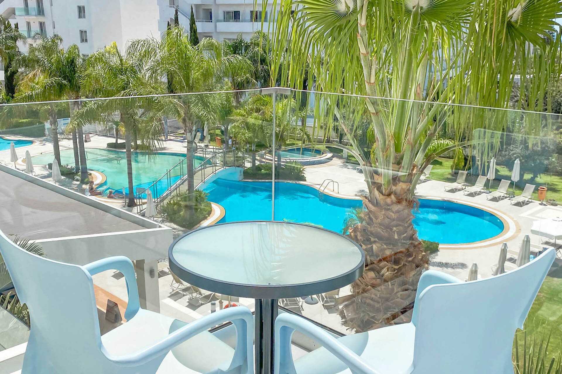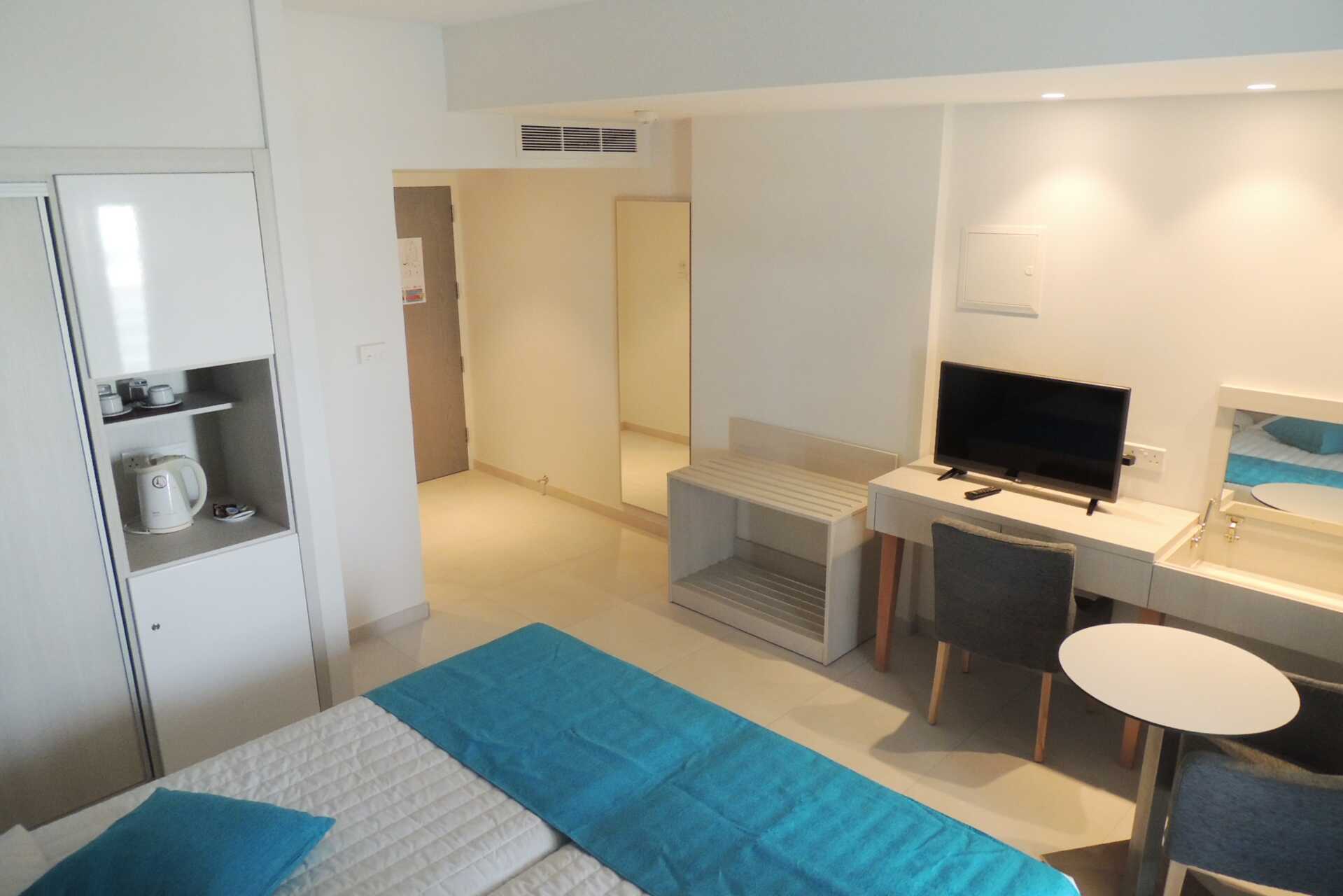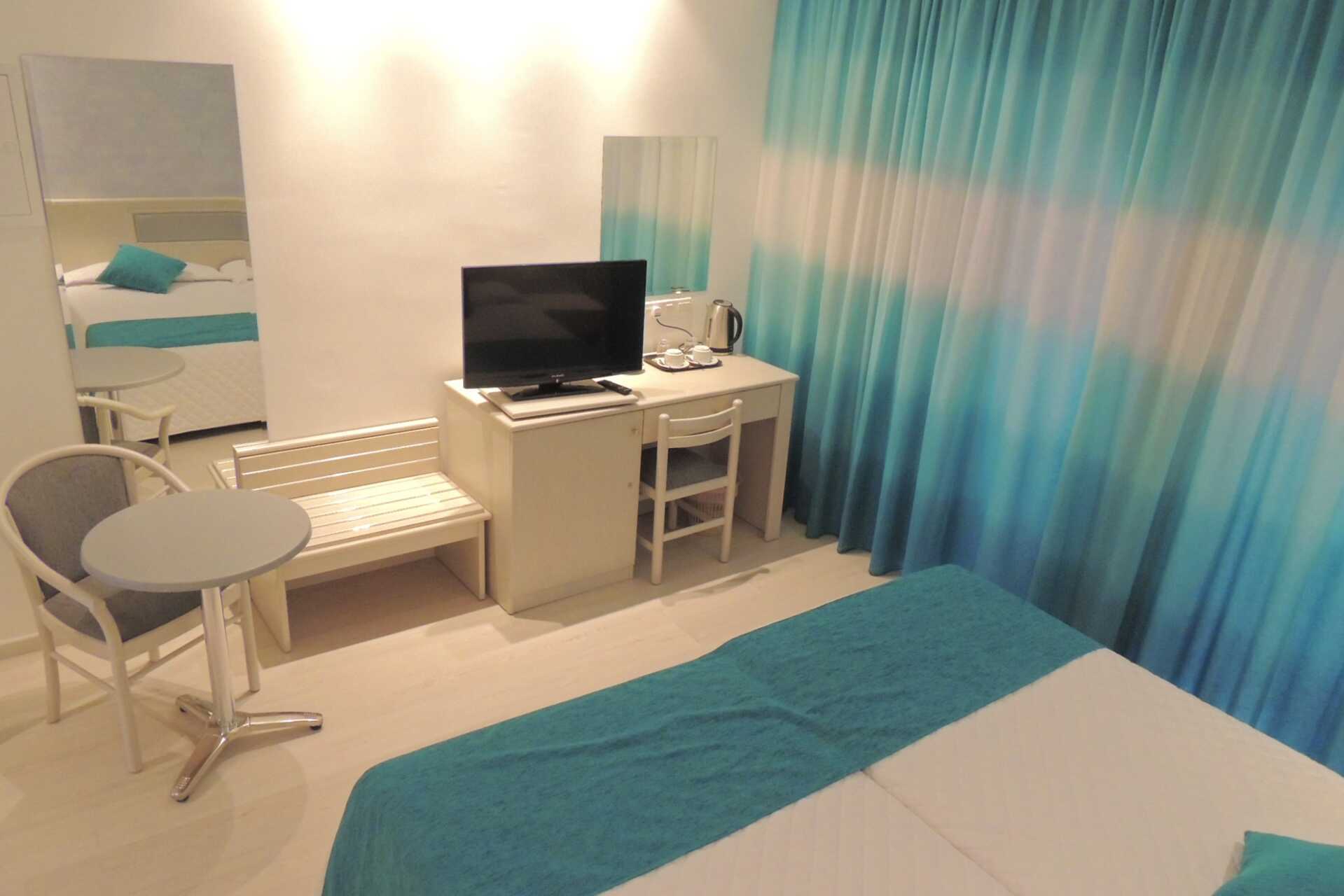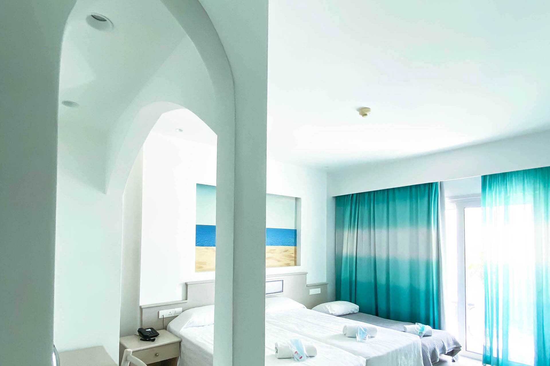 Kahden hengen huone parvekkeella, osassa allasnäköala. Kaksi yhden hengen sänkyä. Lisävuodemahdollisuus kokoontaitettavasta vuoteesta. Maksuton wifi ja ilmastointi. Tallelokero lisämaksusta. Pieni jääkaappi. Vedenkeitin, kahvia ja teetä. Tv kansainvälisillä kanavilla. Hiustenkuivain. Kylpyhuoneessa suihku ja wc. Siivous 7 krt/viikko. Alle 2-vuotiaat lapset lasketaan lisävuoteella majoittuviksi henkilöiksi.