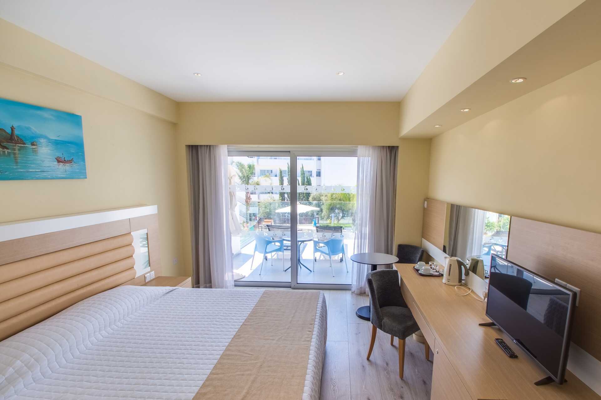 Superior-huone, jossa on suuri terassi ja näköala uima-altaalle. Aurinkotuolit ja -varjoja ulkotilassa. Parivuode tai kaksi yhden hengen sänkyä. Maksuton wifi ja ilmastointi. Tallelokero lisämaksusta. Pieni jääkaappi. Vedenkeitin, kahvia ja teetä. Tv kansainvälisillä kanavilla. Hiustenkuivain. Kylpyhuoneessa suihku ja wc. Siivous 7 krt/viikko. Alle 2-vuotiaat lapset lasketaan lisävuoteella majoittuviksi henkilöiksi.