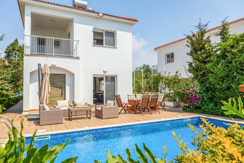 Vaihtoehtoisesti huvilan uima-allasterassi on loistava paikka iltapäivien viettoon ystävien ja perheen kanssa, kun kokoatte herkullisen mezze-lautasen, joka tarjoillaan lasillisen viileää viiniä tai paikallista olutta kanssa. Jos pidät hyvän kirjan seurasta, viihtyisät puutarhasohvat ovat ihanteellinen paikka.