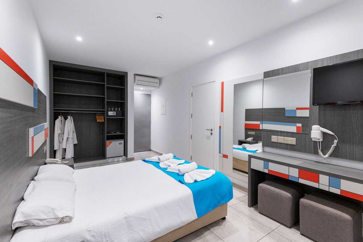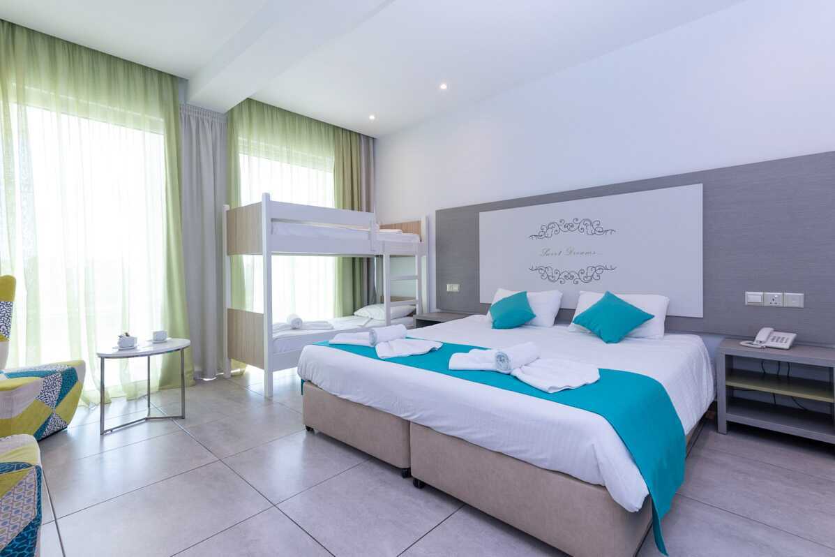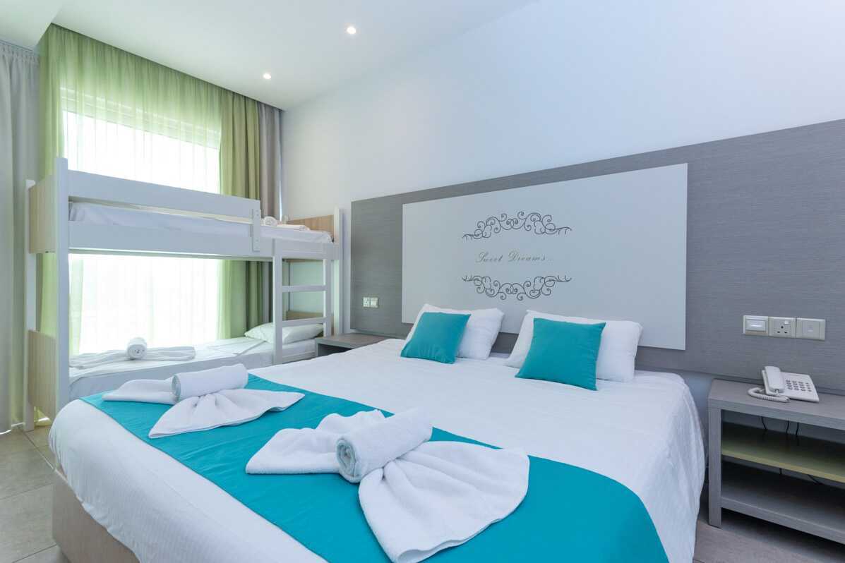 Superior perhehuone parvekkeella. Parivuode tai kaksi yhden hengen sänkyä. Lisävuodemahdollisuus kokoontaitettavassa sängyssä, nojatuolissa tai kerrossängyssä. Maksuton wifi, ilmastointi ja tallelokero. Jääkaappi. Tv kansainvälisillä kanavilla. Hiustenkuivain. Kylpyhuoneessa suihku ja wc. Siivous 7 krt/viikko. Alle 2-vuotiaat lapset lasketaan lisävuoteella majoittuviksi henkilöiksi.