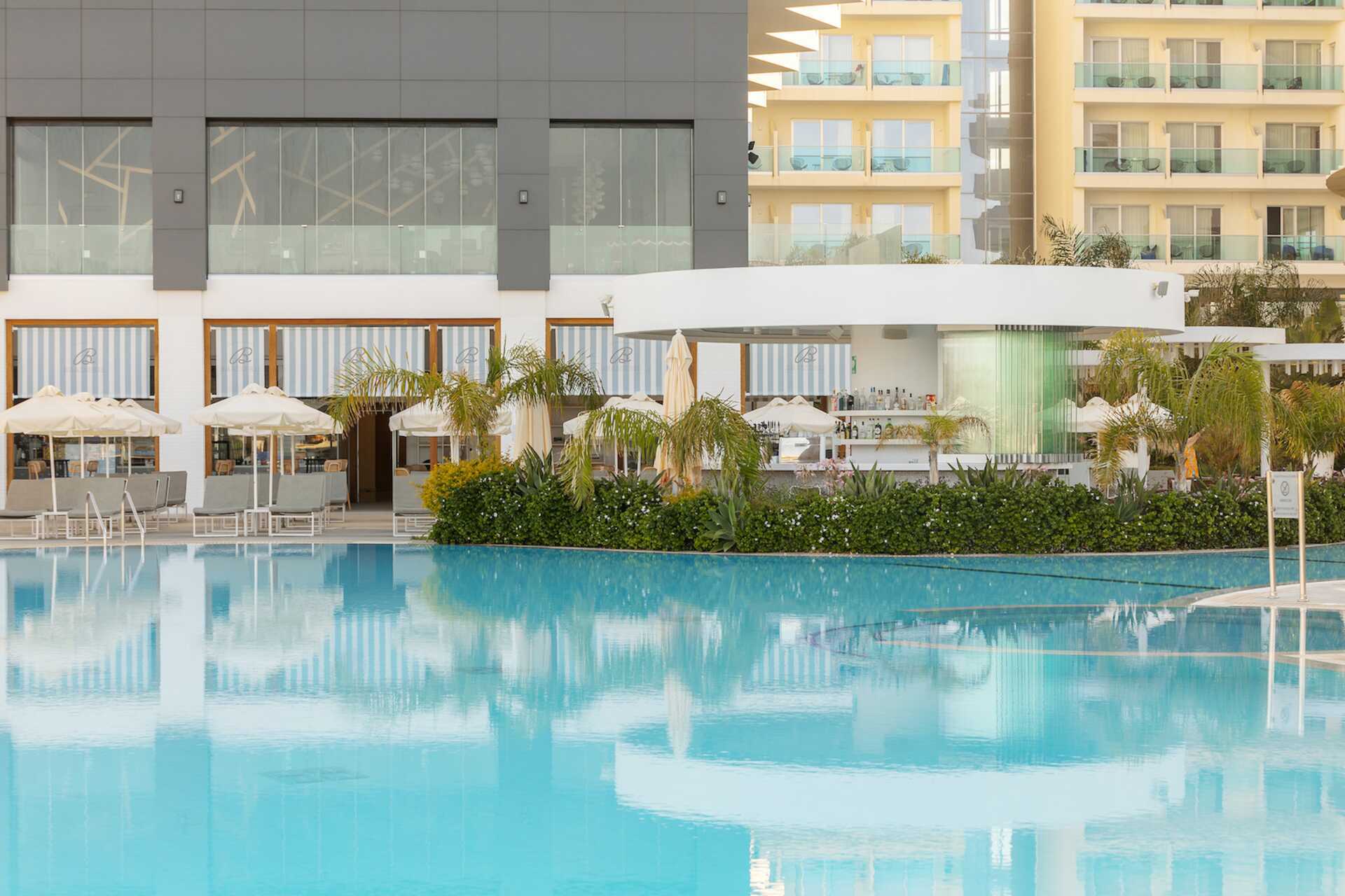 NissiBlu Beach Resort on tyylikäs ja moderni hotelli helpon kävelymatkan päässä Nissi Beachiltä. Hotelli tarjoaa useita erilaisia ateriapaketteja puolihoidosta All Inclusive - runsas buffetaamiainen sisältyy hintaan. Hotellissa on myös ihana allasalue, spa rentoutumiseen ja jos haluat treenata tai liikkua, löydät tenniskentän ja hotelli tarjoaa myös jooga- ja ryhmätreenit.