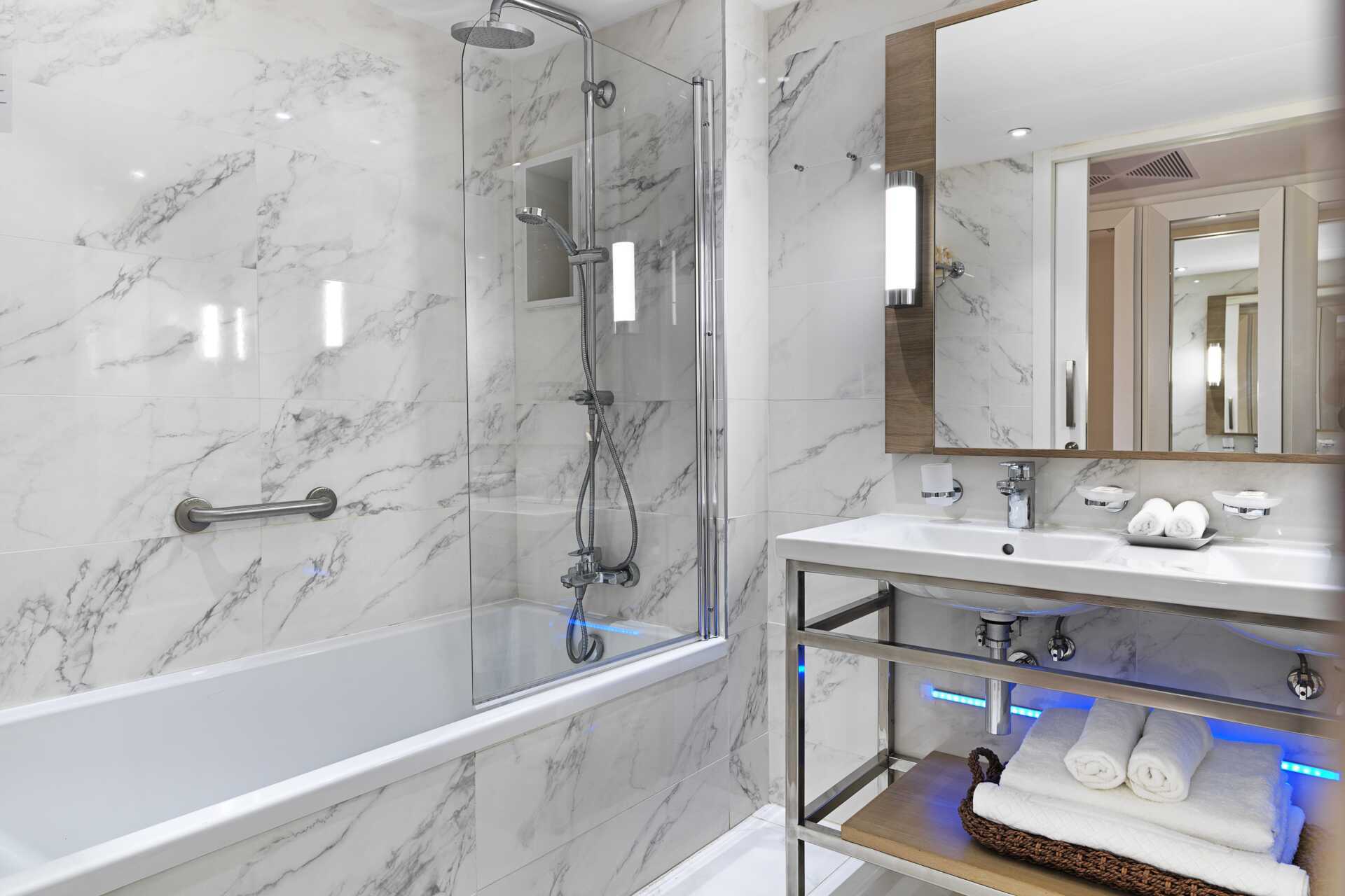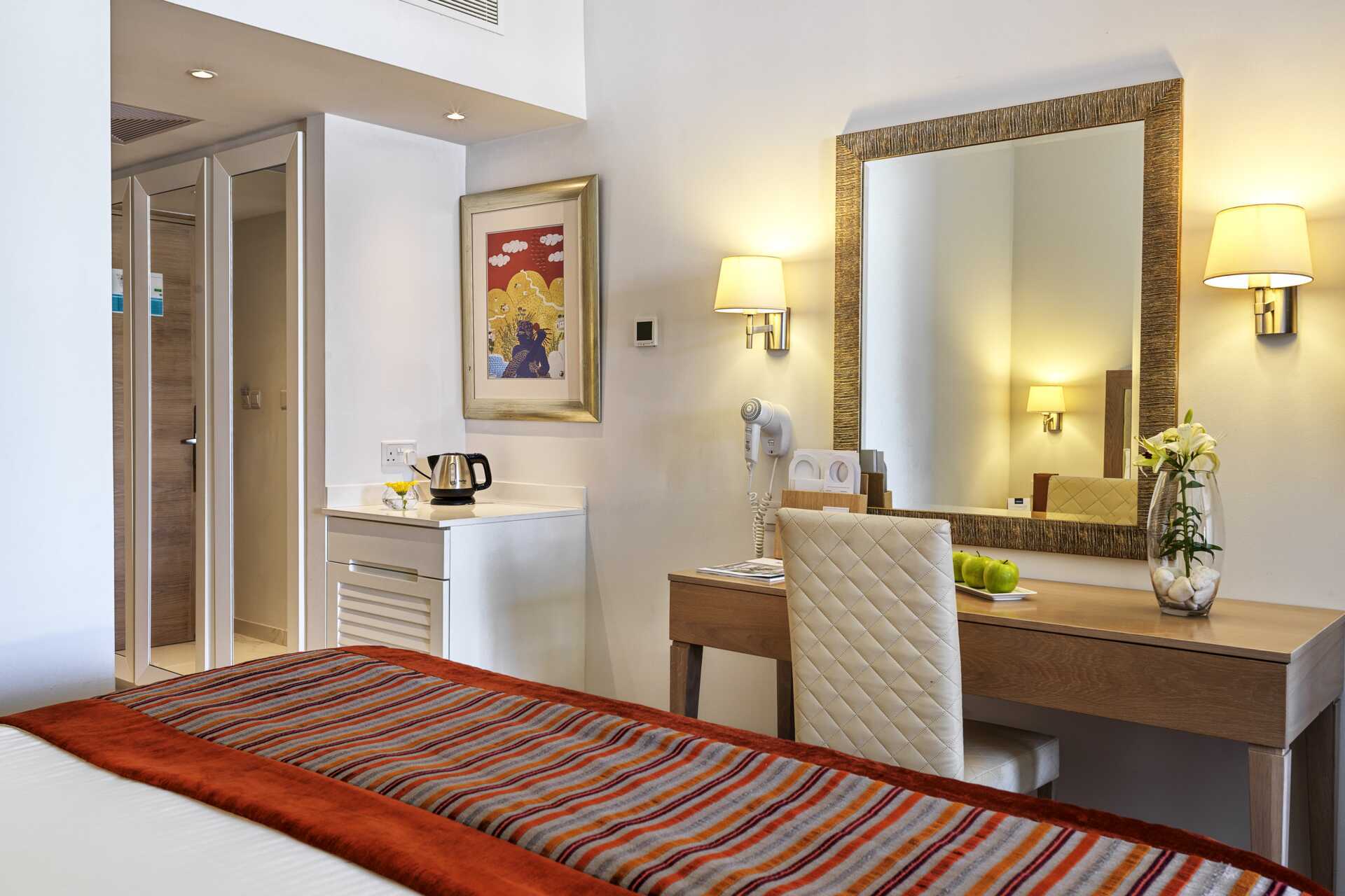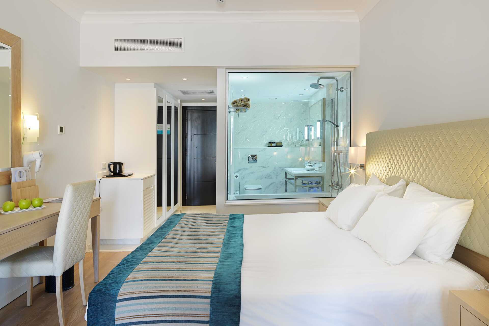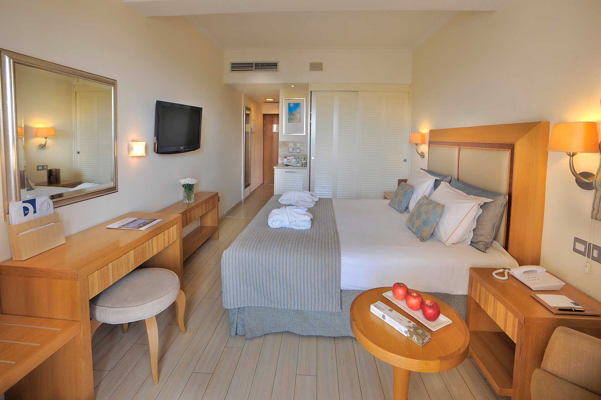 Superior-sviittejä, joissa on parveke merinäköalalla. Parivuode tai kaksi yhden hengen vuodetta. Maksuton wifi, ilmastointi ja tallelokero. Jääkaappi. Pullo vettä, täytetään päivittäin. Vedenkeitin, teetä ja kahvia. Tv kansainvälisillä kanavilla. Kylpytakit ja tossut. Hiustenkuivain. Kylpyamme ja wc. Siivous 7 krt/viikko.