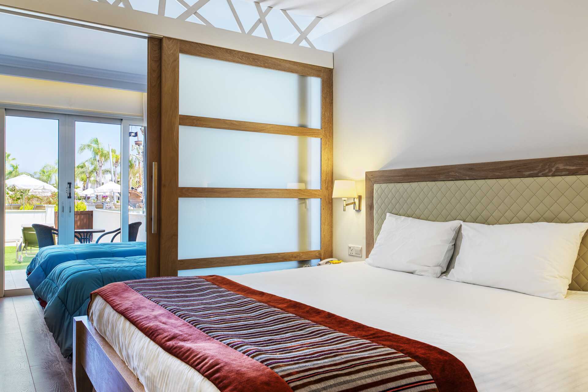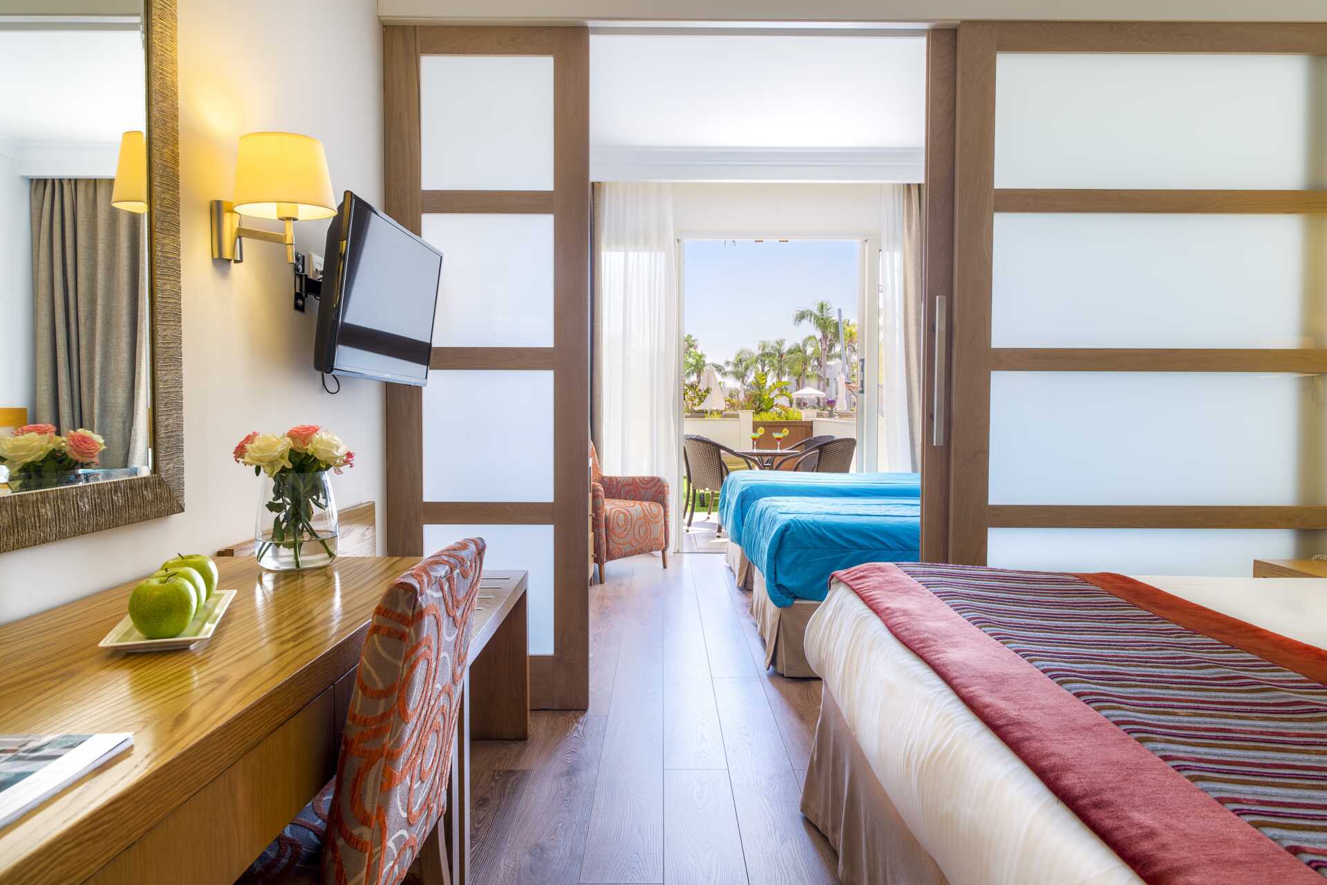 Perhesviittejä, joissa on parveke. Perhesviitti koostuu kahdesta makuuhuoneesta, joiden välillä on lasinen, huurrutettu liukuovi. Parivuode. Lisävuodemahdollisuus kahdesta yhden hengen vuoteesta tai kerrossängystä. Maksuton wifi, ilmastointi ja tallelokero. Jääkaappi. Pullo vettä, täytetään päivittäin. Vedenkeitin, teetä ja kahvia. Tv kansainvälisillä kanavilla. Kylpytakit ja tossut. Hiustenkuivain. Kylpyamme ja wc. Siivous 7 krt/viikko. Alle 2-vuotiaat katsotaan majoittuviksi lisävuoteessa.