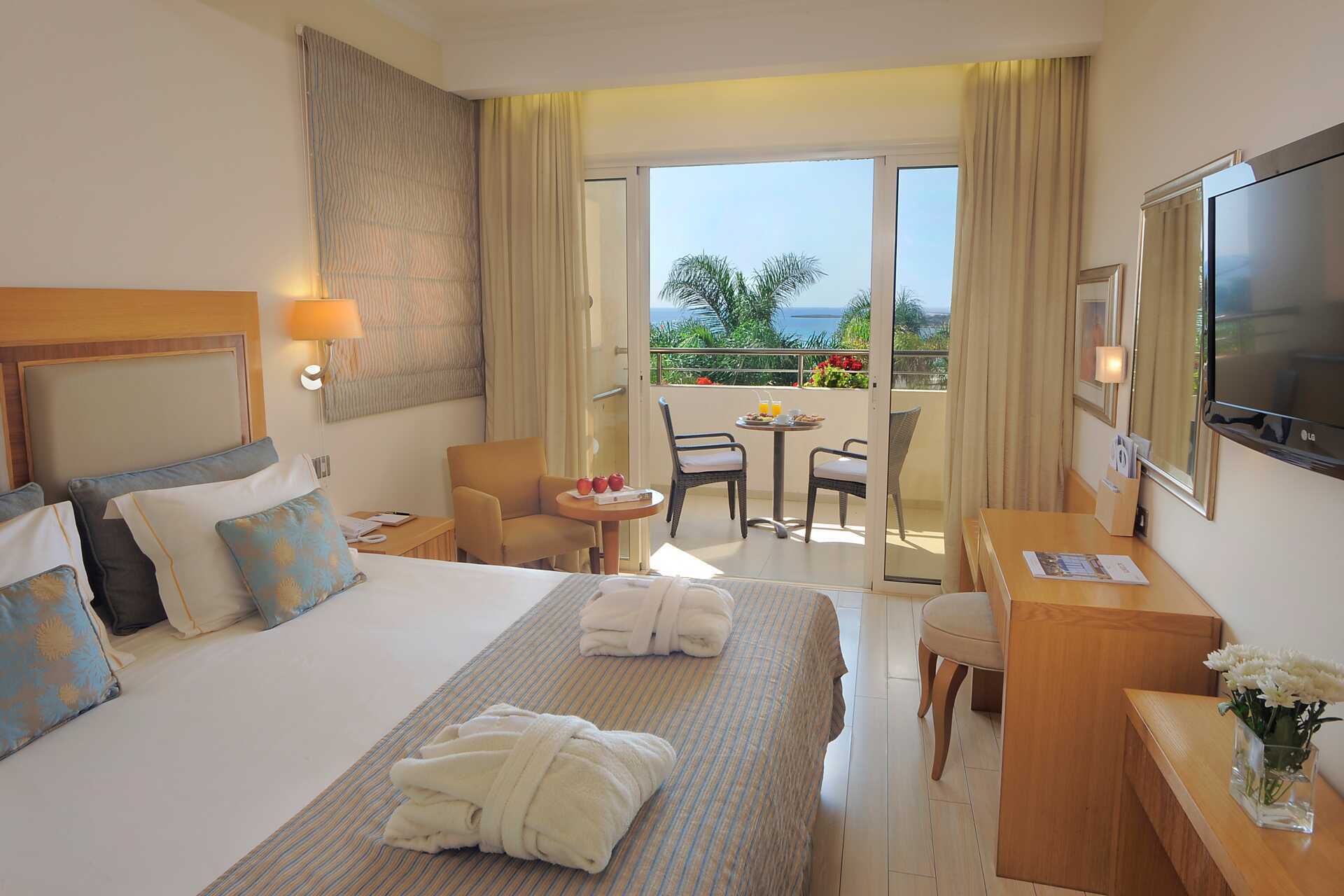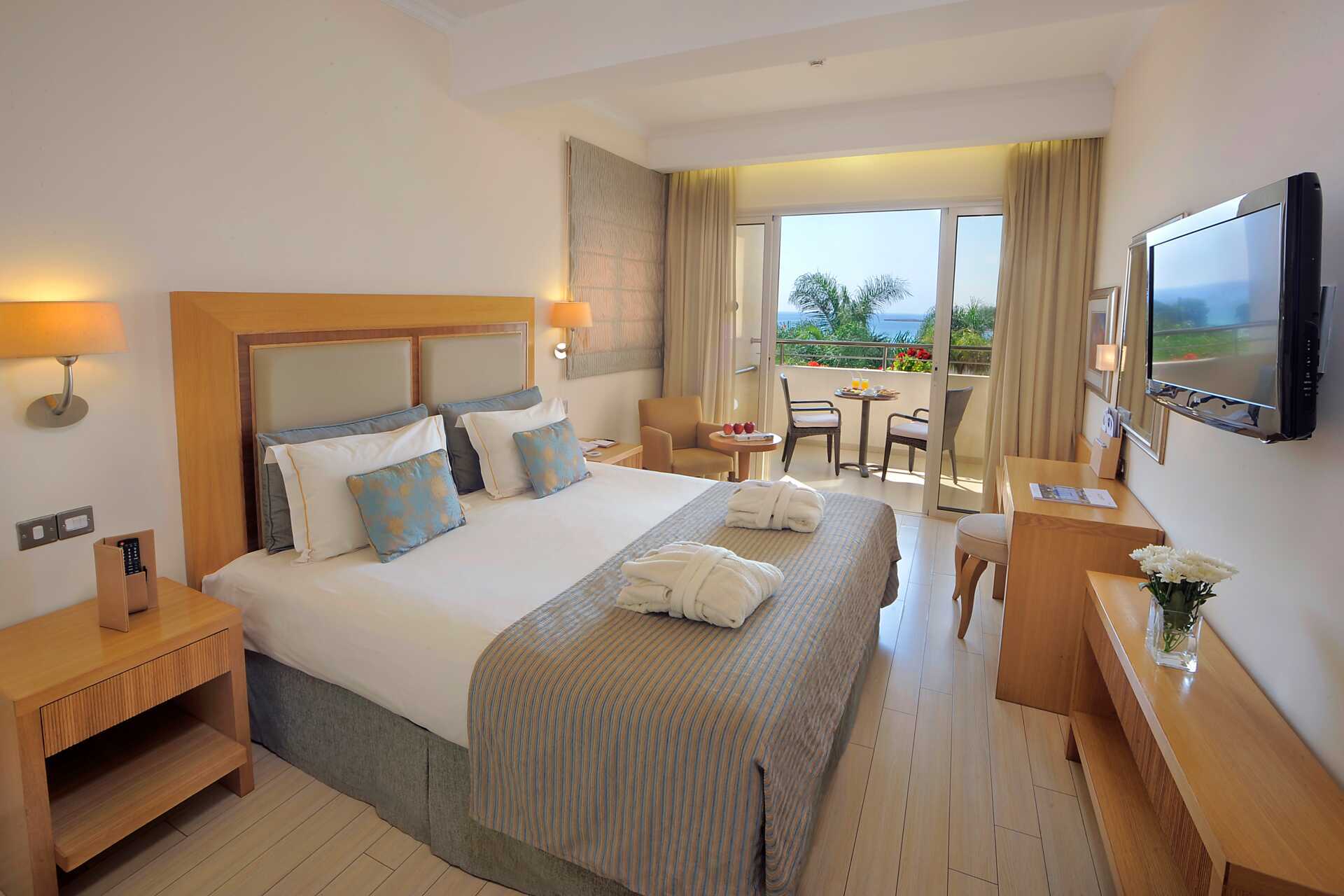 Superior-huone parvekkeella. Yksi parivuode tai kaksi erillistä vuodetta. Lisävuodemahdollisuus vuodesohvaan. Maksuton wifi, ilmastointi ja tallelokero. Jääkaappi. Vesipullo sisältyy hintaan, joka täytetään päivittäin. Vedenkeitin, kahvia ja teetä. Tv kansainvälisillä kanavilla. Kylpytakit ja tossut Hiustenkuivain. Kylpyhuoneessa suihku ja wc. Siivous 7 krt/viikko. Alle 2-vuotiaat lapset lasketaan lisävuoteella majoittuviksi henkilöiksi.