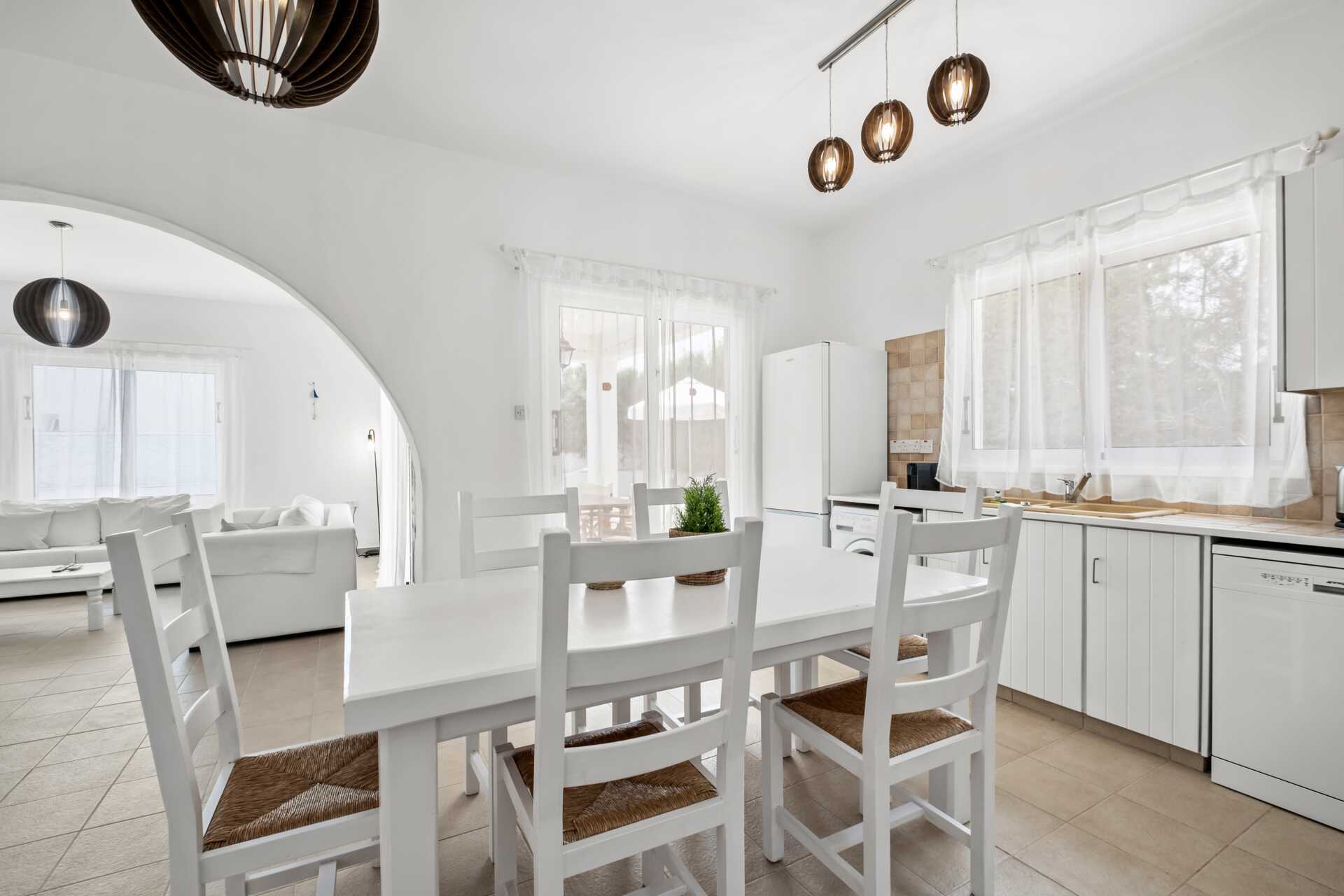 Huvila on kahdessa kerroksessa ja sisääntulokerroksessa on keittiö ja avara olohuone sekä kylpyhuone, jossa hiustenkuivaaja, suihku ja wc. Yläkerrassa on kolme makuuhuonetta ja kylpyhuone, jossa hiustenkuivaaja, kylpyamme ja wc. Yhdessä makuuhuoneessa parivuode ja kahdessa makuuhuoneessa kaksi erillistä vuodetta. Keittiössä jääkaappi ja pakastin, liesi, uuni, pesukone, astianpesukone, espressokeitin, kahvinkeitin, mikro, leivänpaahdin, vedenkeitin ja yksinkertainen keittiövarustus. Maksuton wifi, ilmastointi ja tallelokero. Tv kansainvälisillä kanavilla. Silitysrauta ja -lauta. Allas siivotaan joka päivä ja huvilan siivous kahdesti viikossa. Maksuton pysäköinti.