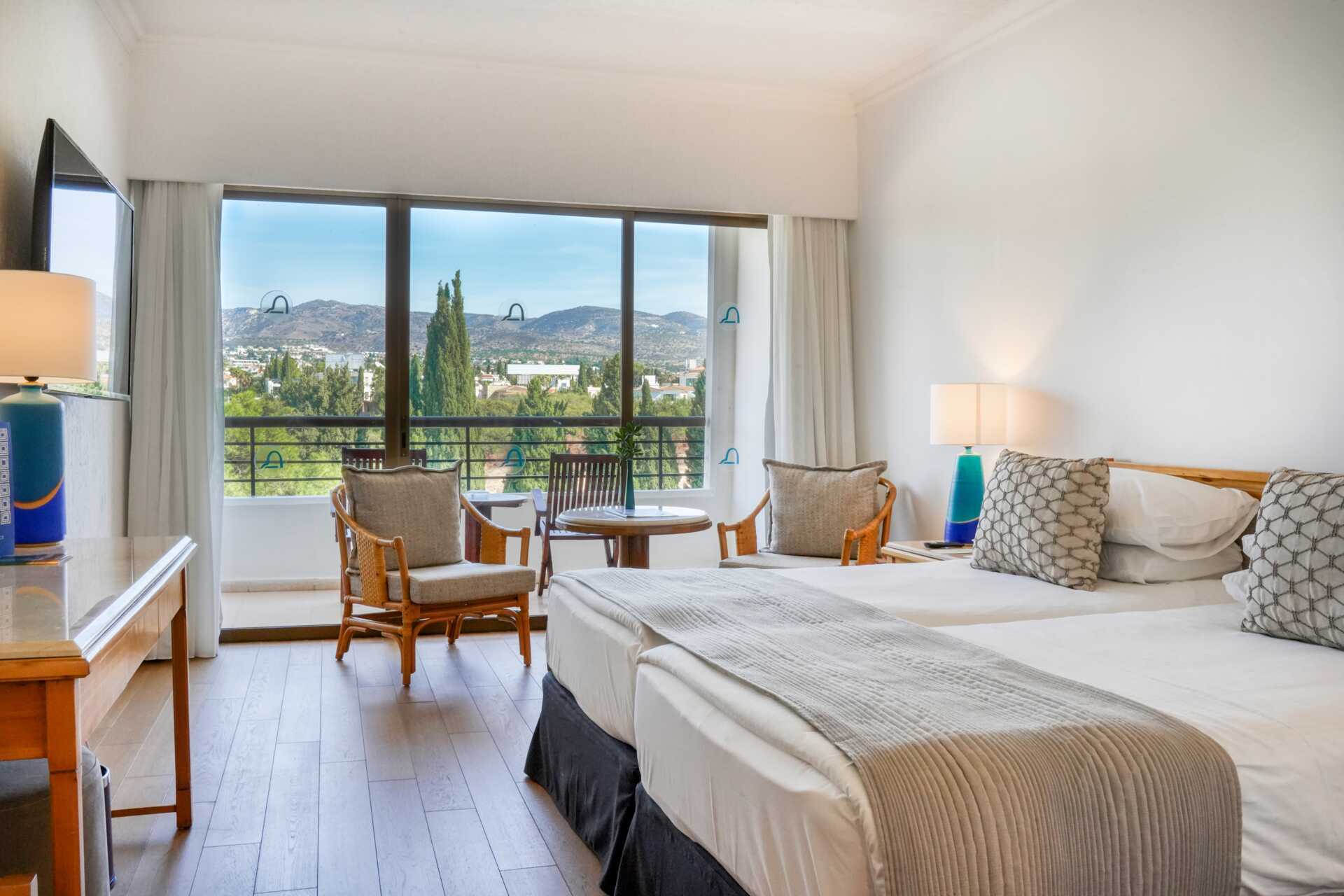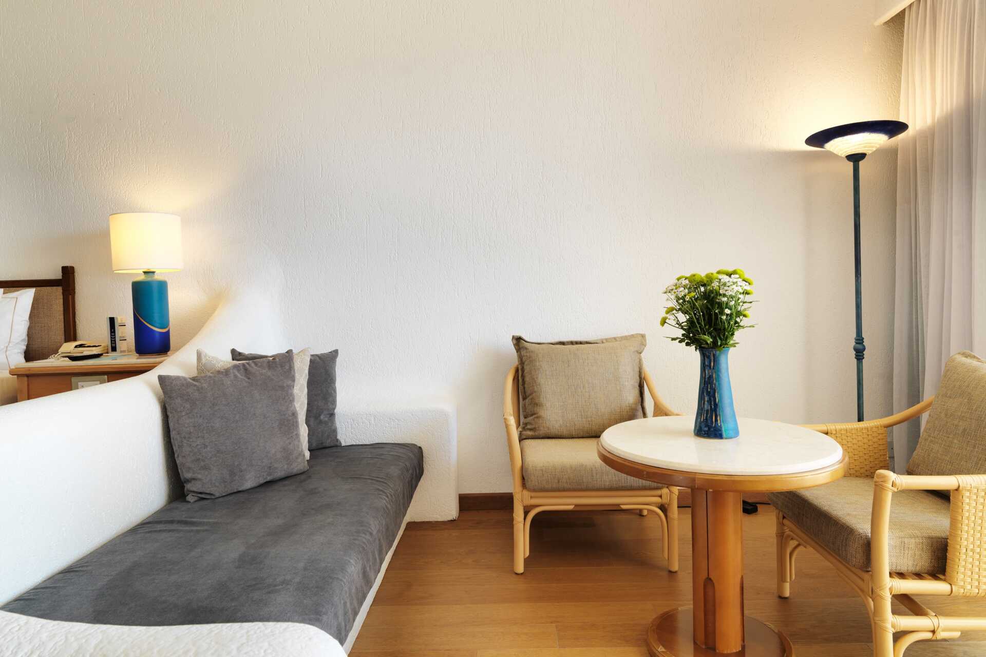 Superior-huone parvekkeella ja merinäköalalla. Parivuode ja yhden hengen vuode. Lisävuodemahdollisuus vuodesohvalla. Maksuton wifi, ilmastointi ja tallelokero. Minibaari lisämaksulla. Vedenkeitin, kahvia ja teetä. Tv kansainvälisillä kanavilla. Hiustenkuivain. Kylpyhuoneessa suihku ja wc. Siivous 7 krt/viikko. Alle 2-vuotiaat lapset lasketaan lisävuoteella majoittuviksi henkilöiksi.