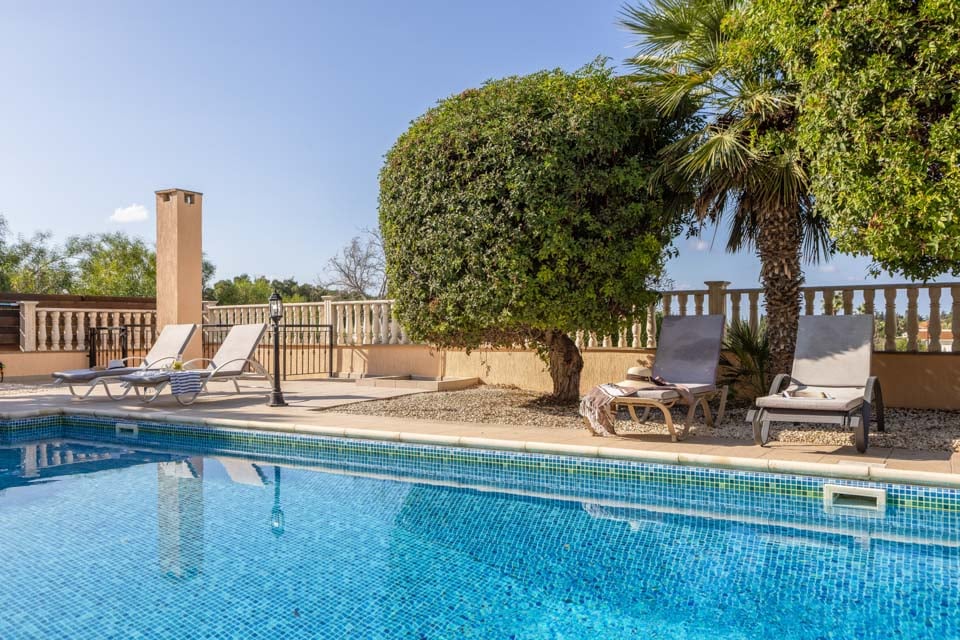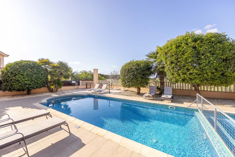 Huvilassa on suuri yksityinen uima-allas, johon kuuluu portaat ja suuri yksityinen ulkoalue, jossa on ulkoruokailutila, ulko-oleskelutila ja täydellinen valikoima ulkokalusteita, kuten aurinkotuoleja ja -varjoja.