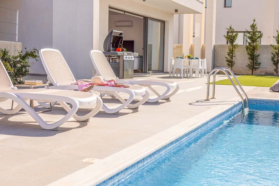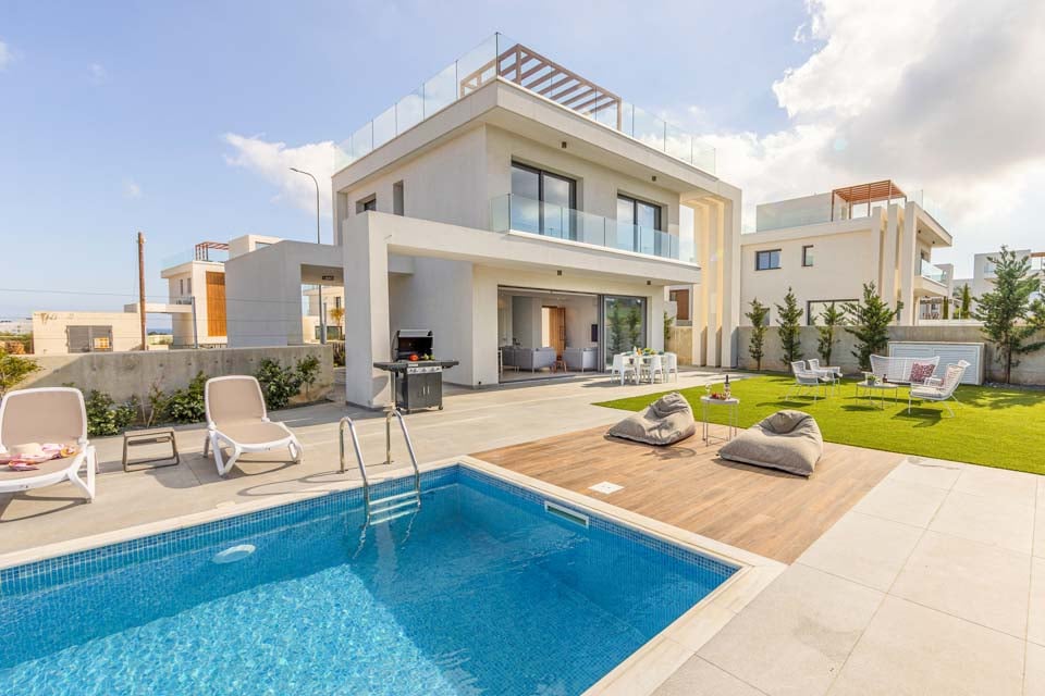 Loistava vaihtoehto niille, jotka eivät halua vuokrata autoa, By The Bay 33 sijaitsee kivenheiton päässä Protaraksen keskustasta. Paikallisten tavernoiden ja ruokapaikkojen, vilkkaiden baarien ja hiekkarantojen ansiosta tekemistä riittää auringonpaisteisella lomallasi. Sisarhuvilansa By The Bay 32 vieressä sijaitsevat huvilat voi varata yhdessä jopa kahdelletoista hengelle. Kolme täysin ilmastoitua makuuhuonetta pitävät olosi viileänä lämpiminä kesäöinä, ja niissä on tilaa kuudelle vieraalle kussakin. Sisätilat ovat modernit ja korkeatasoisesti sisustettuja, ja niissä on nykyaikaiset huonekalut ja valkoiseksi kalkitut seinät.