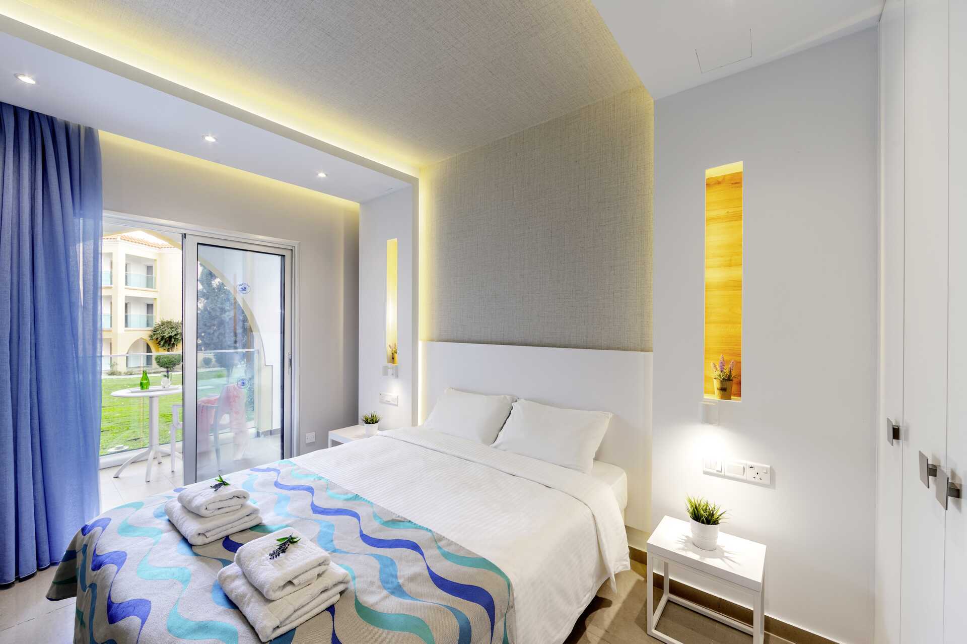 Superior-kaksioita parvekkeella tai maaterassilla. Yhdistetty olohuone ja minikeittiö sekä erillinen makuuhuone, jossa parivuode tai kaksi erillistä vuodetta. Mahdollisuus lisävuoteeseen sohvasta. Minikeittiö, jossa jääkaappi, mikro, keittolevyt ja yksinkertainen keittovarustus. Kahvin ja teen keittomahdollisuus. Tv satelliittikanavilla. Maksuton wifi, ilmastointi ja tallelokero. Hiustenkuivain. Kylpyamme tai suihku ja wc. Siivous 6 krt/viikko.