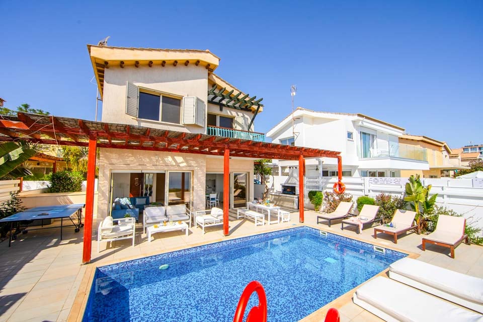 Pakene Protaraksen upeille rannoille Kyproksella ja koe täydellinen yhdistelmä mukavuutta ja rentoutumista Protaras Artisan Seafront Villa 6:ssa. Tämä elegantti neljän makuuhuoneen ja kahden kylpyhuoneen huvila tarjoaa henkeäsalpaavat merinäkymät, lämmitetyn uima-altaan* ja erinomaisen sijainnin vain kivenheiton päässä rannalta.