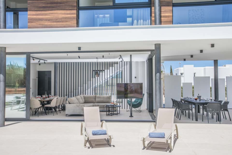 Kolmikerroksisessa huvilassa on tilava, avoin olohuone, keittiö ja ruokailutila – kaikki varustettu nykyaikaisilla kalusteilla ja uusimmalla teknologialla. Myös kaksipuoliset lasiovet parantavat tätä modernia tilaa entisestään ja johtavat upeaan ulkotilaan, johon haluat herätä joka aamu.