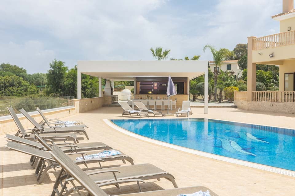 Huvilan takaosassa on viehättävä ja laaja patio, jossa on ulkobaari ja -keittiö, grillialue ja tilava uima-allas. Uudessa pergolassa on runsaasti katettuja ja kattamattomia istumapaikkoja, joissa on tilaa unohtumattomaan ulkoilmaruokailuun Kyproksen taivaan alla.
