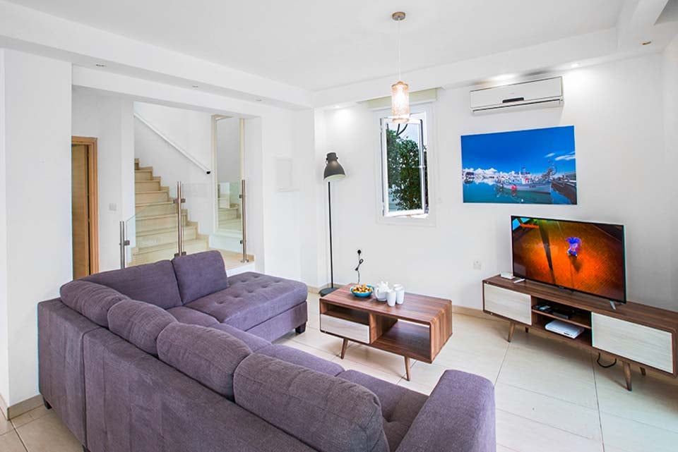 Sisätiloissa on moderni mutta viihtyisä sisustus. Olohuoneessa on kulmasohva, laajakuvatelevisio, jossa on täysikokoinen brittiläinen satelliittikanava, ja kuuden hengen ruokapöytä, kun taas suuri avokeittiö on täysin varusteltu moderneilla kodinkoneilla. Tässä kerroksessa on myös erillinen wc.
