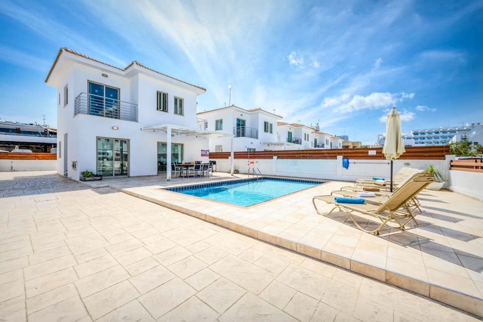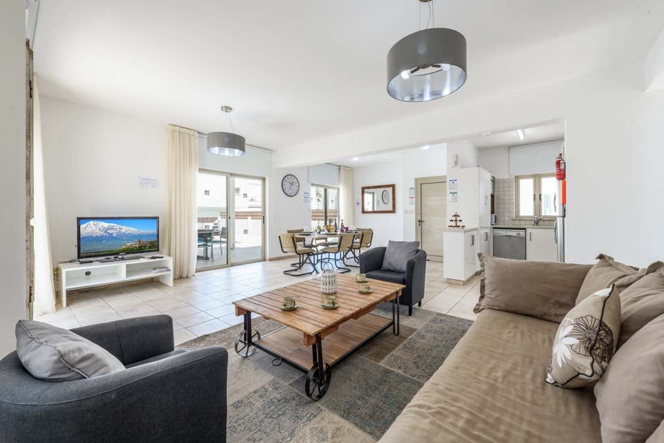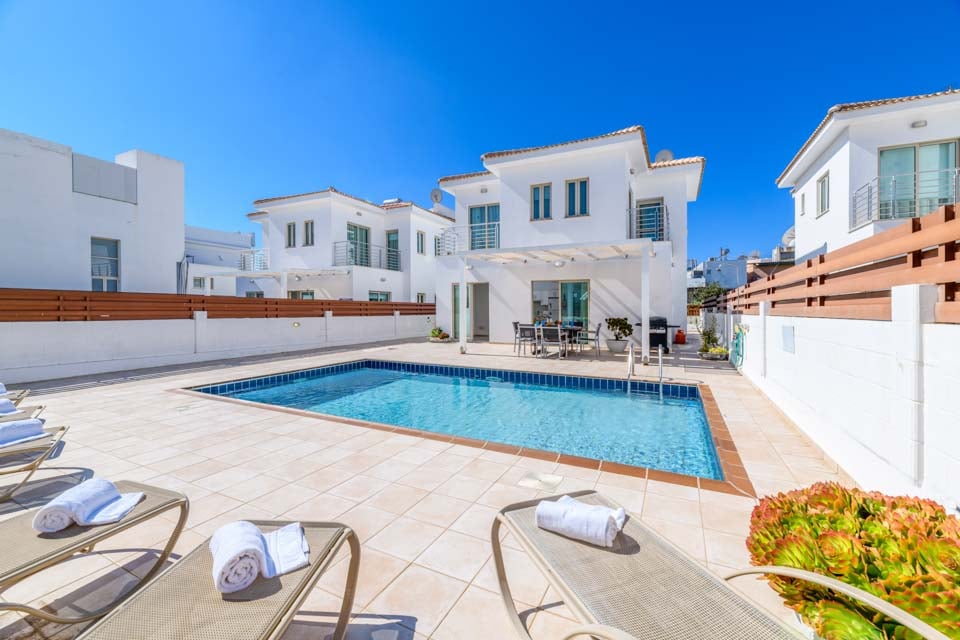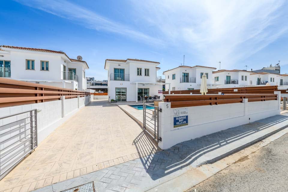 Sano hei näkemisen arvoinen Villa Sunrise Bay 5. Tämä valkoiseksi kalkittu huvila sijaitsee naapurihuviloiden vieressä loistavalla paikalla niille, jotka eivät halua vuokrata autoa. Aivan pääkadun vieressä sijaitsevasta hotellista löydät kaikki mukavuudet, kuten paikallisia lähikauppoja, kauppoja, baareja ja tavernoja.