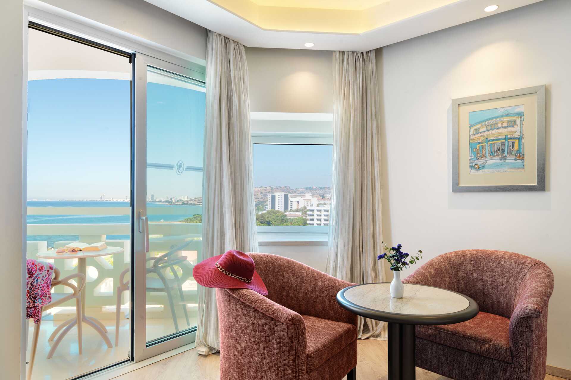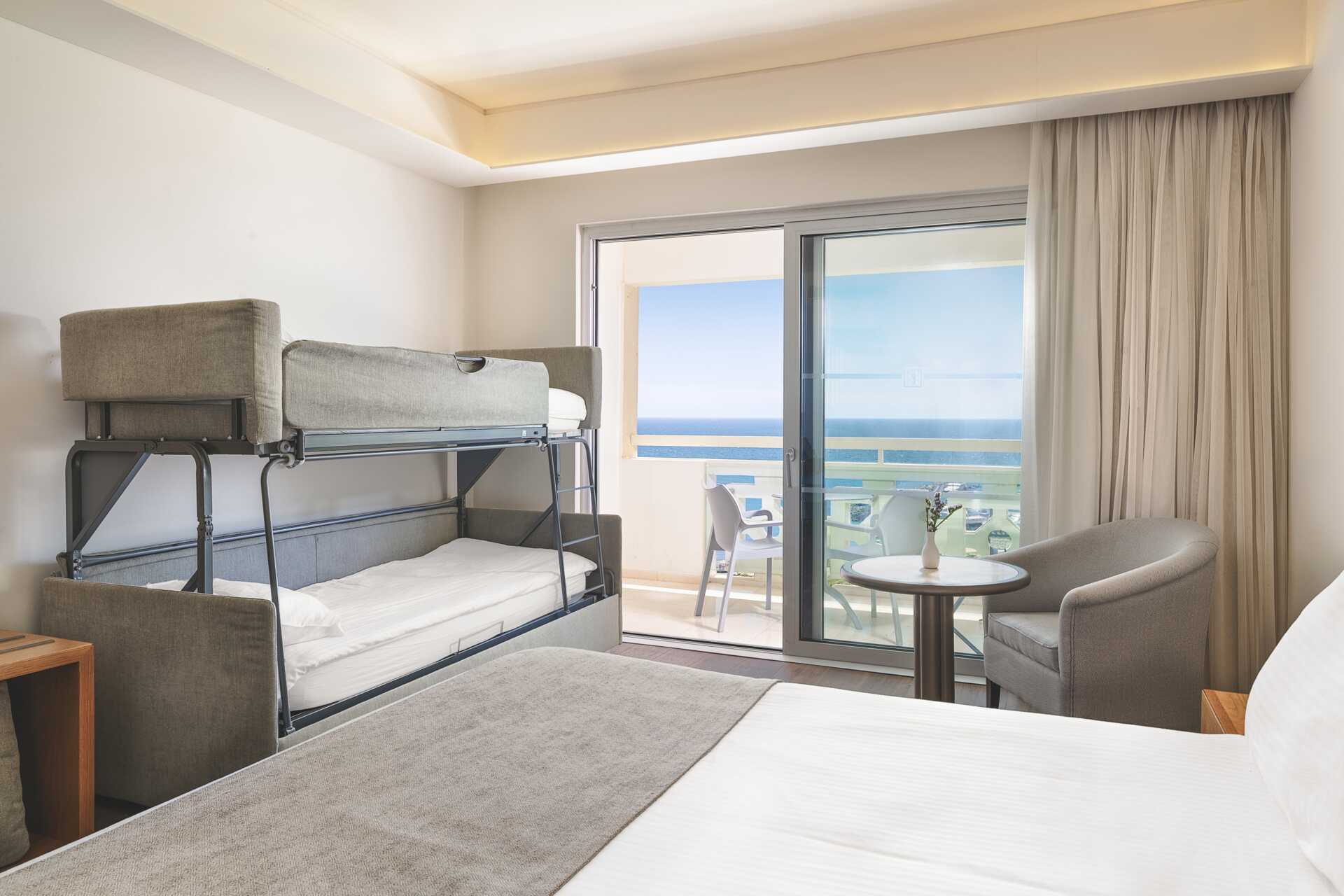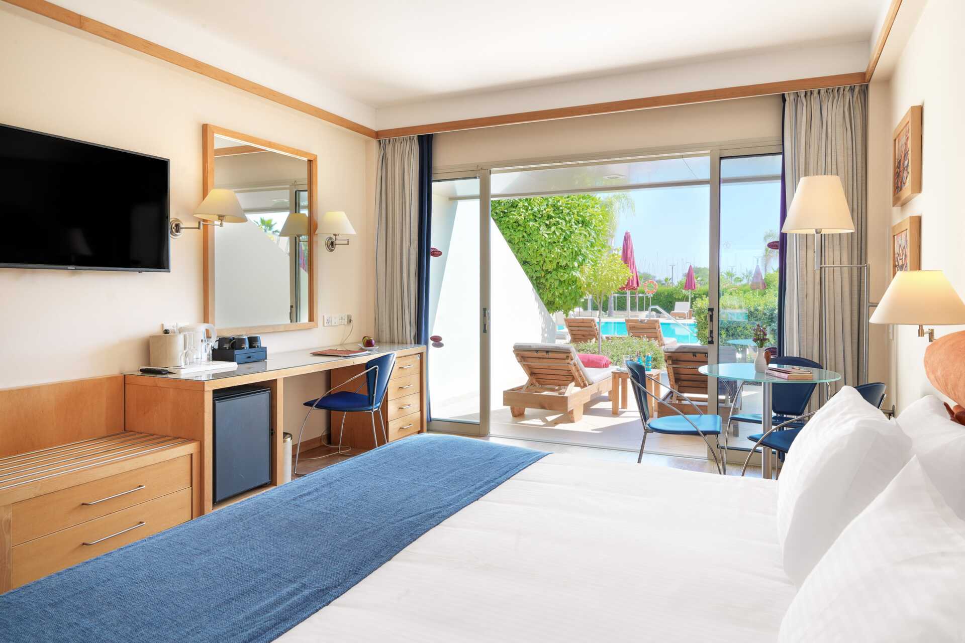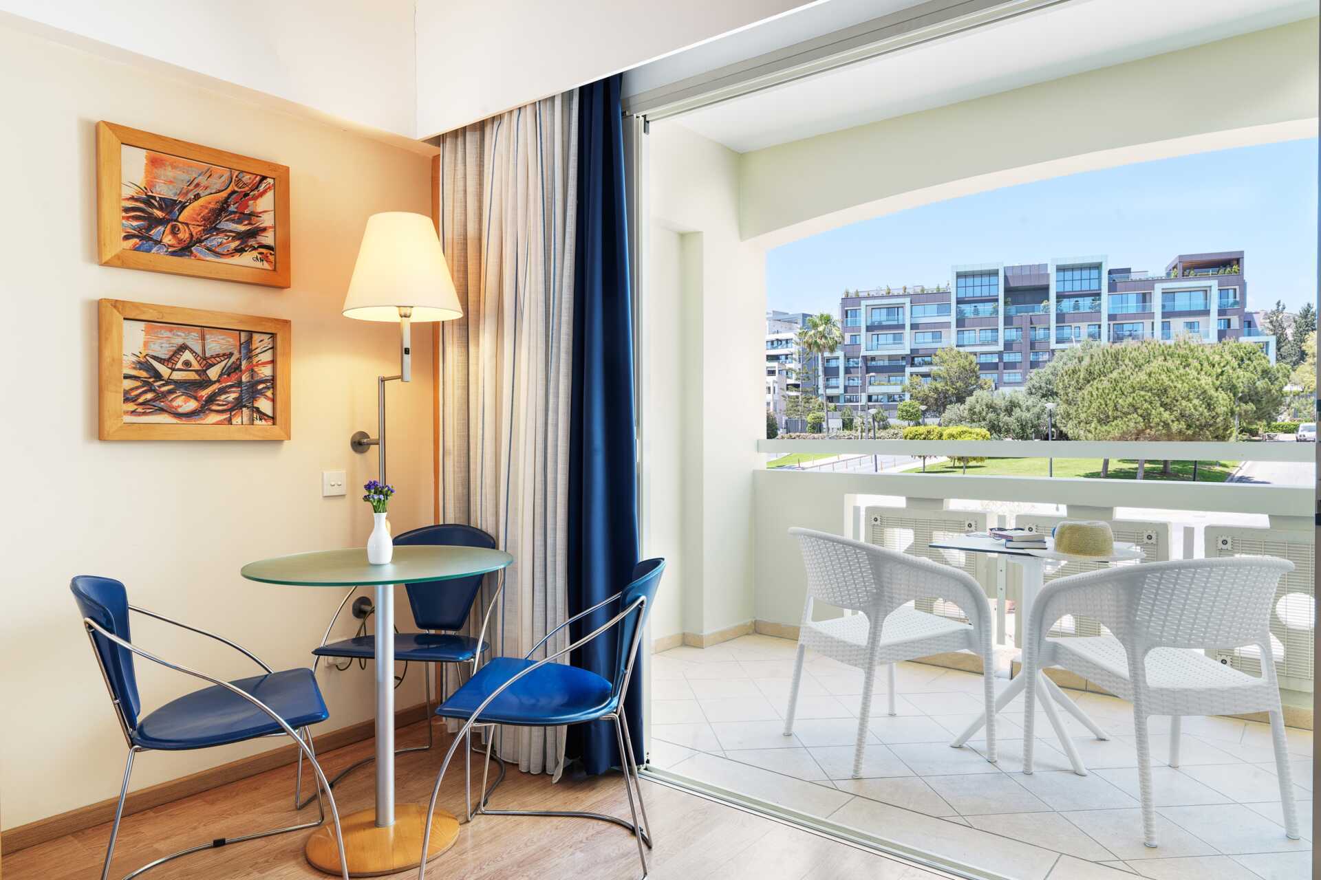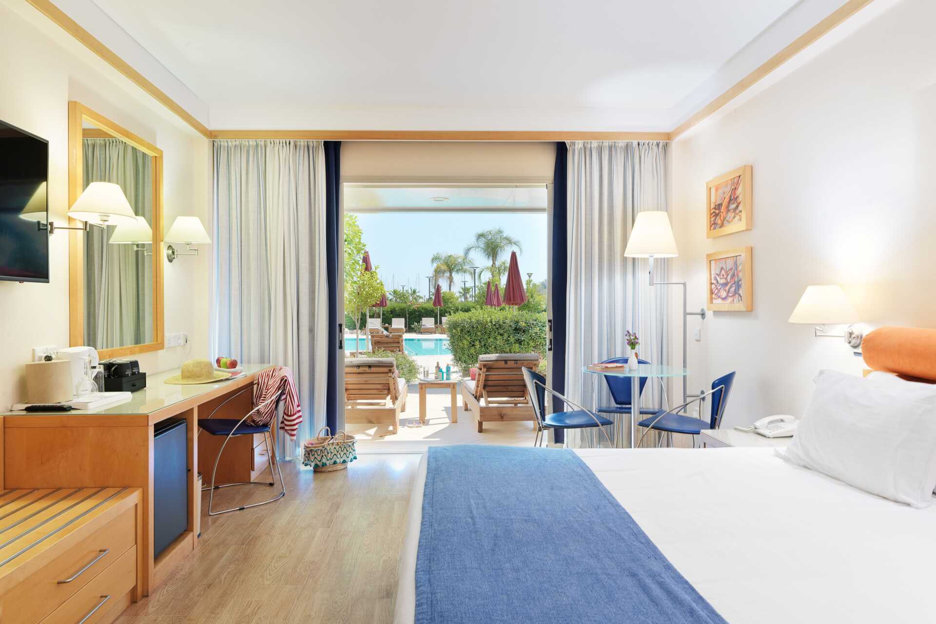 Kahden hengen huoneet parvekkeella, joista osasta on merinäköala ja joistakin laguunille päin. Parivuode tai kaksi yhden hengen sänkyä. Mahdollisuus saada lisävuode vuodesohvaan tai kerrossänkyyn. Maksuton wifi, ilmastointi ja tallelokero. Minibaari lisämaksulla. Vedenkeitin, kahvia ja teetä. Tv kansainvälisillä kanavilla. Kylpytakit ja tossut kahdelle aikuiselle. Hiustenkuivain. Kylpyhuoneessa amme ja wc. Siivous 7 krt/viikko. Alle 2-vuotiaat lapset lasketaan lisävuoteella majoittuviksi henkilöiksi.