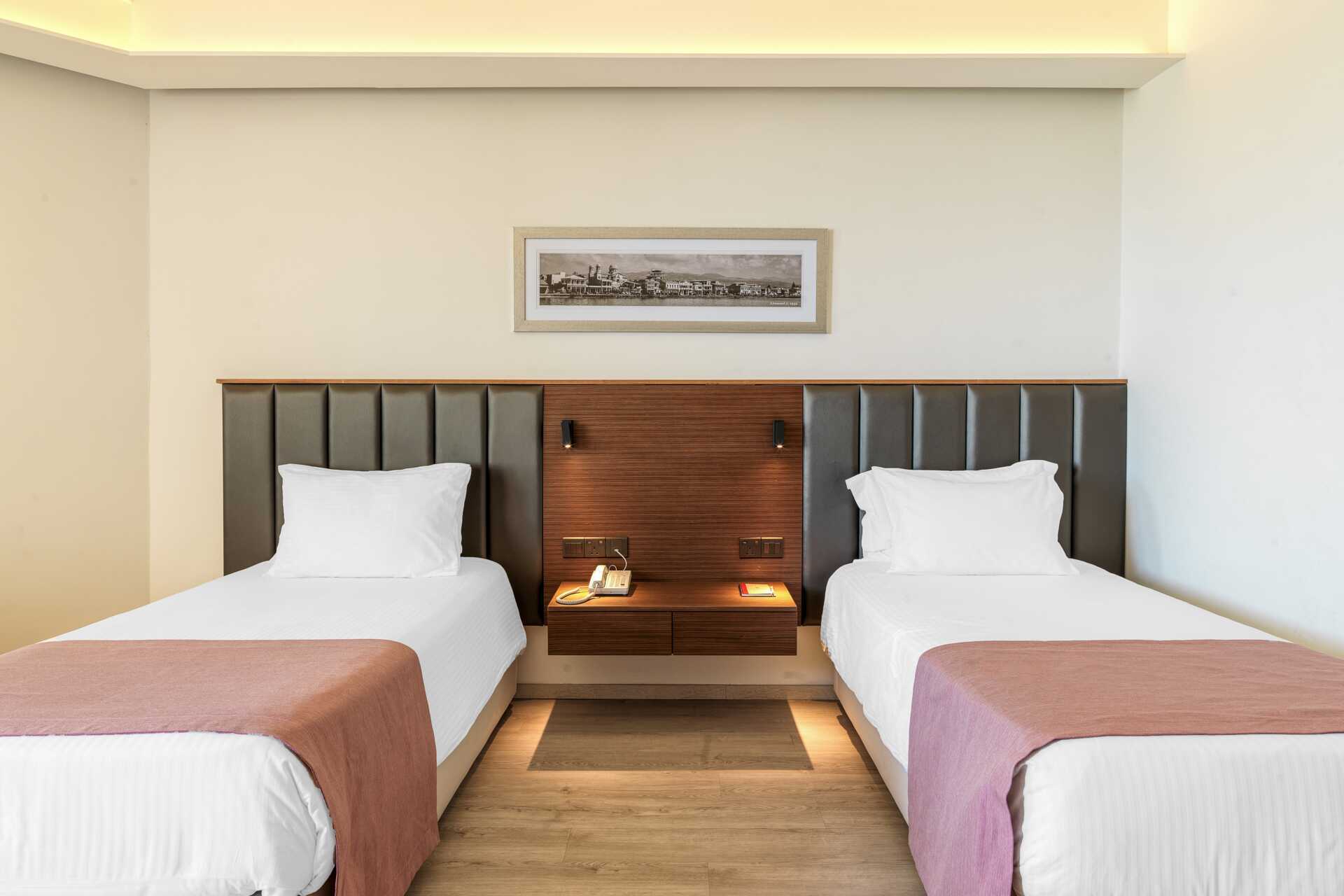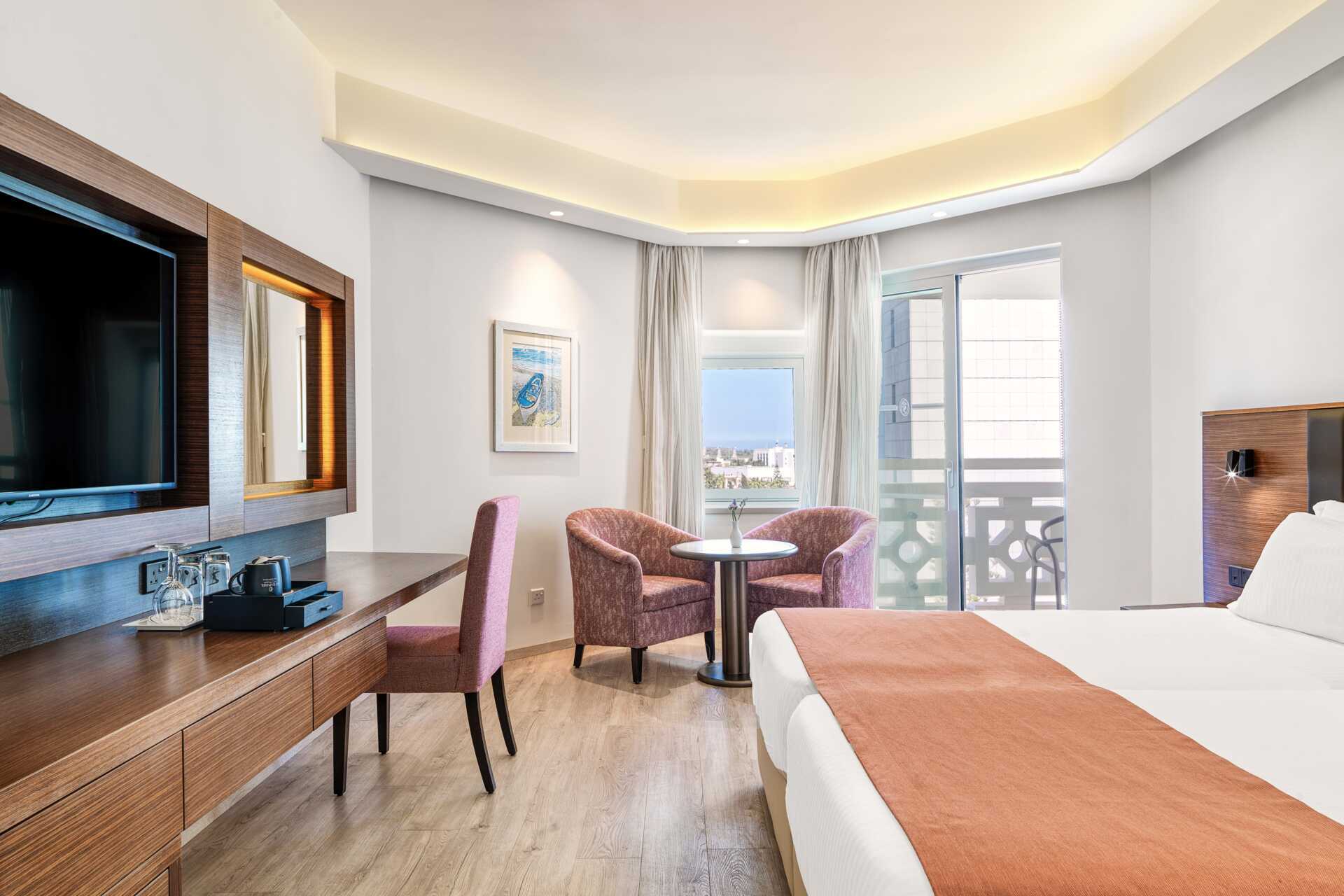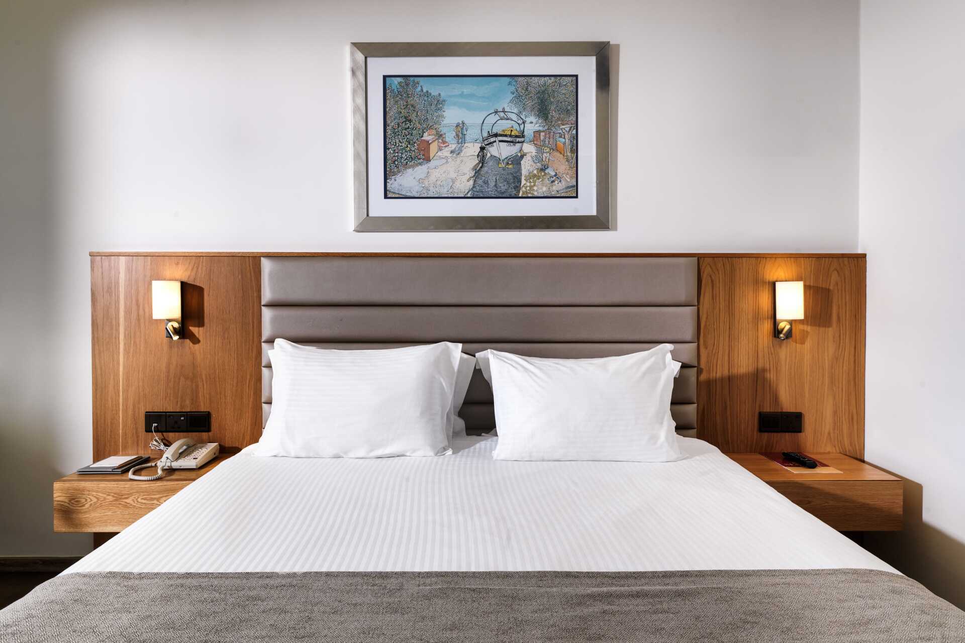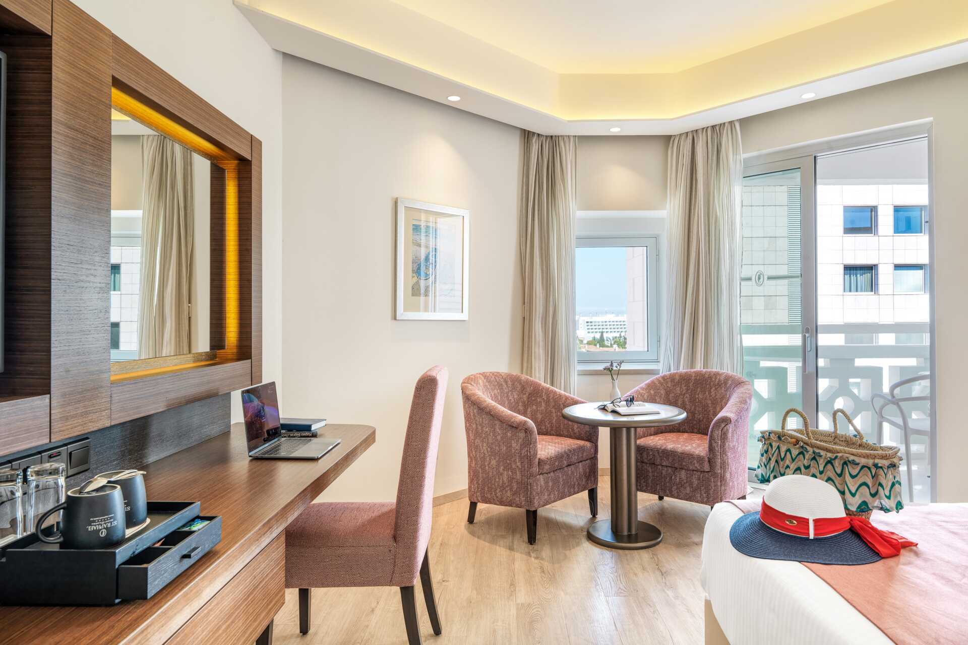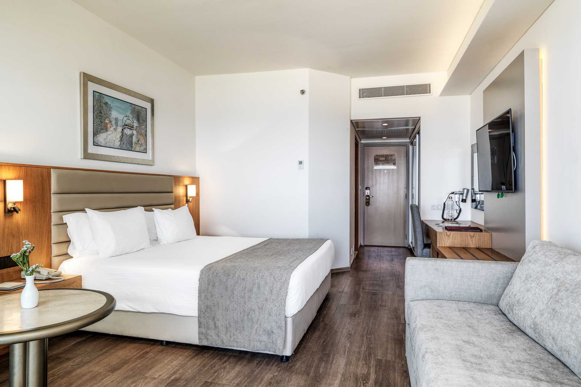Kahden hengen huoneet parvekkeella, joista osasta on merinäköala ja joistakin laguunille päin. Parivuode tai kaksi yhden hengen sänkyä. Mahdollisuus saada lisävuode vuodesohvaan tai kerrossänkyyn. Maksuton wifi, ilmastointi ja tallelokero. Minibaari lisämaksulla. Vedenkeitin, kahvia ja teetä. Tv kansainvälisillä kanavilla. Kylpytakit ja tossut kahdelle aikuiselle. Hiustenkuivain. Kylpyhuoneessa amme ja wc. Siivous 7 krt/viikko. Alle 2-vuotiaat lapset lasketaan lisävuoteella majoittuviksi henkilöiksi.