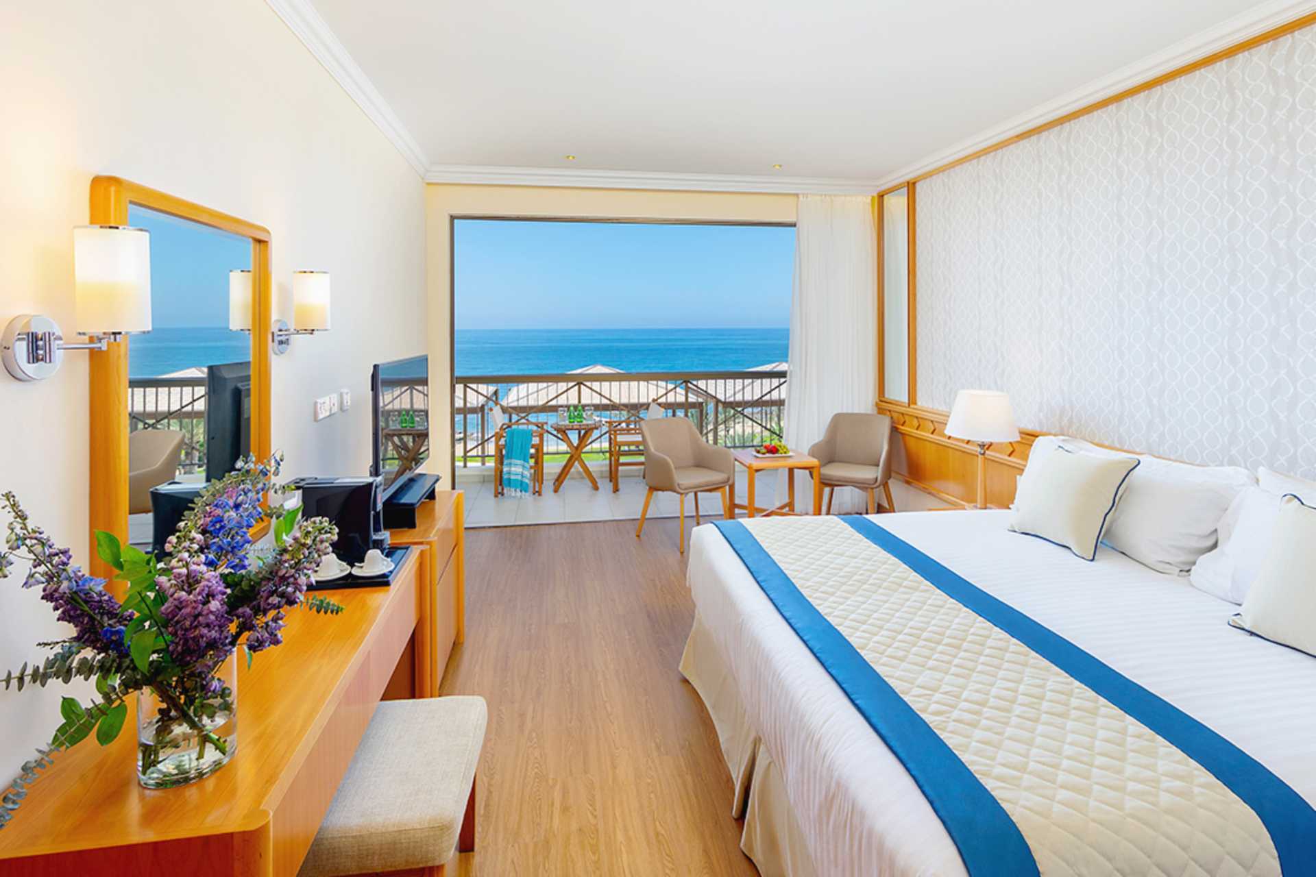 Deluxe-huoneita, joissa on parveke merinäköalalla. Parivuode tai kaksi yhden hengen vuodetta ja lisävuodemahdollisuus vuodesohvaan. Maksuton wifi, ilmastointi ja tallelokero. Jääkaappi. Vedenkeitin, kahvia ja teetä. Espresso-keitin - kapselit eivät sisälly hintaan, mutta ne voidaan ostaa hotellista. Tv kansainvälisillä kanavilla. Silitysvälineet. Hiustenkuivain. Kylpytakit ja tossut. Amme/suihku ja wc. Siivous 7 krt/viikko.