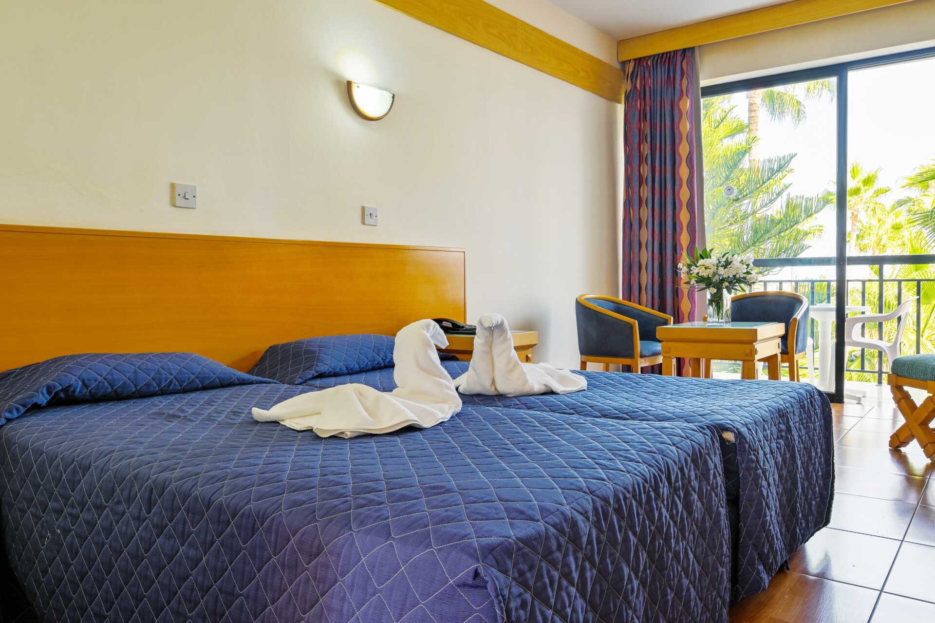 Kahden hengen huoneita, joissa on parveke. Kaksi yhden hengen vuodetta. Maksuton wifi ja ilmastointi. Tallelokero lisämaksusta. Tv kansainvälisillä kanavilla. Hiustenkuivain. Kylpyamme tai suihku ja wc. Siivous 7 krt/viikko.