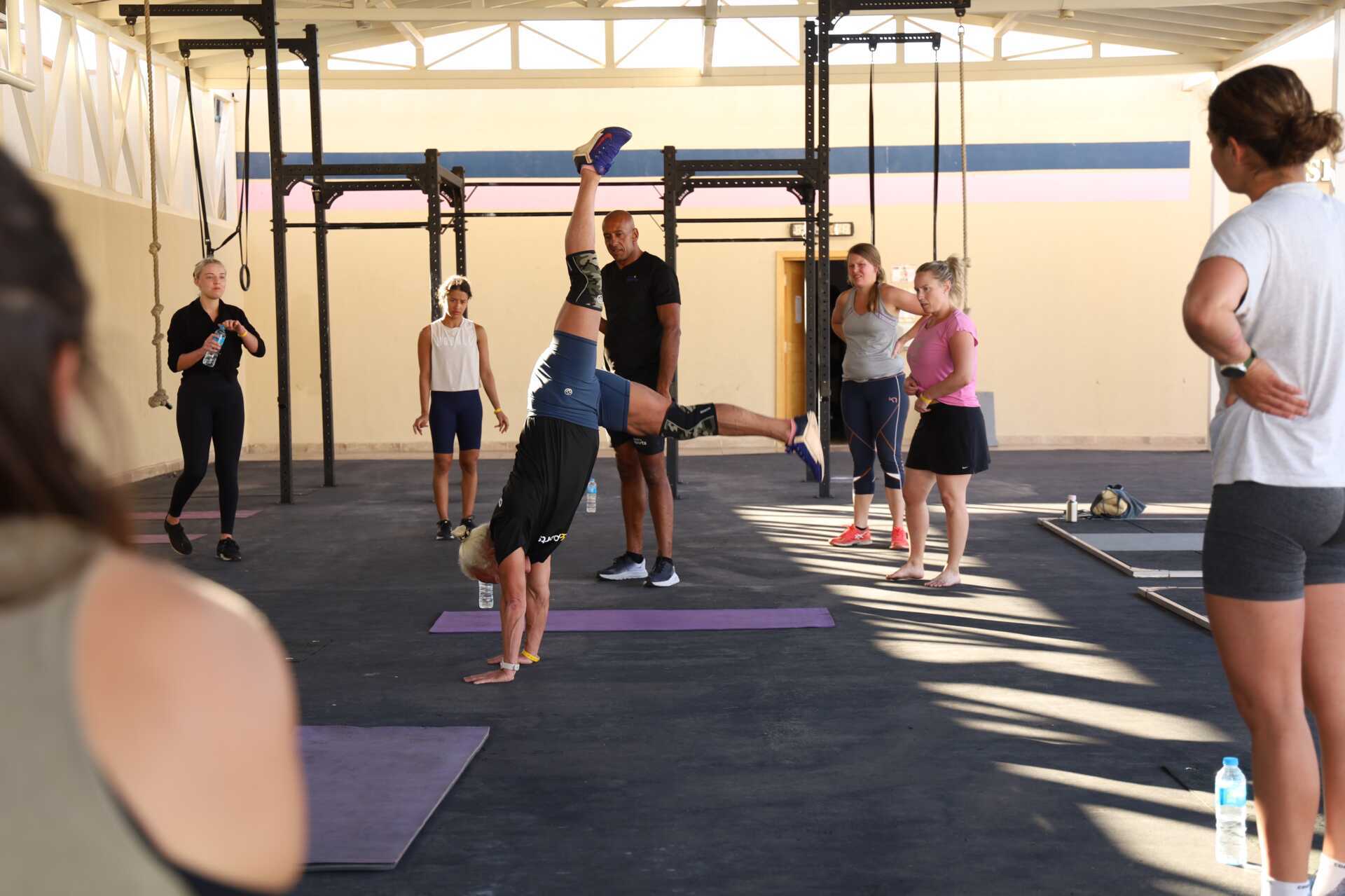 Gymnastics workshops: Käsilläseisonta/päälläseisonta -workshopit, voimisteluharjoituksia CrossFitiin, kuten käsilläseisontapunnerrukset, toes to bar, leuanvedot, pistoolikyykyt jne.