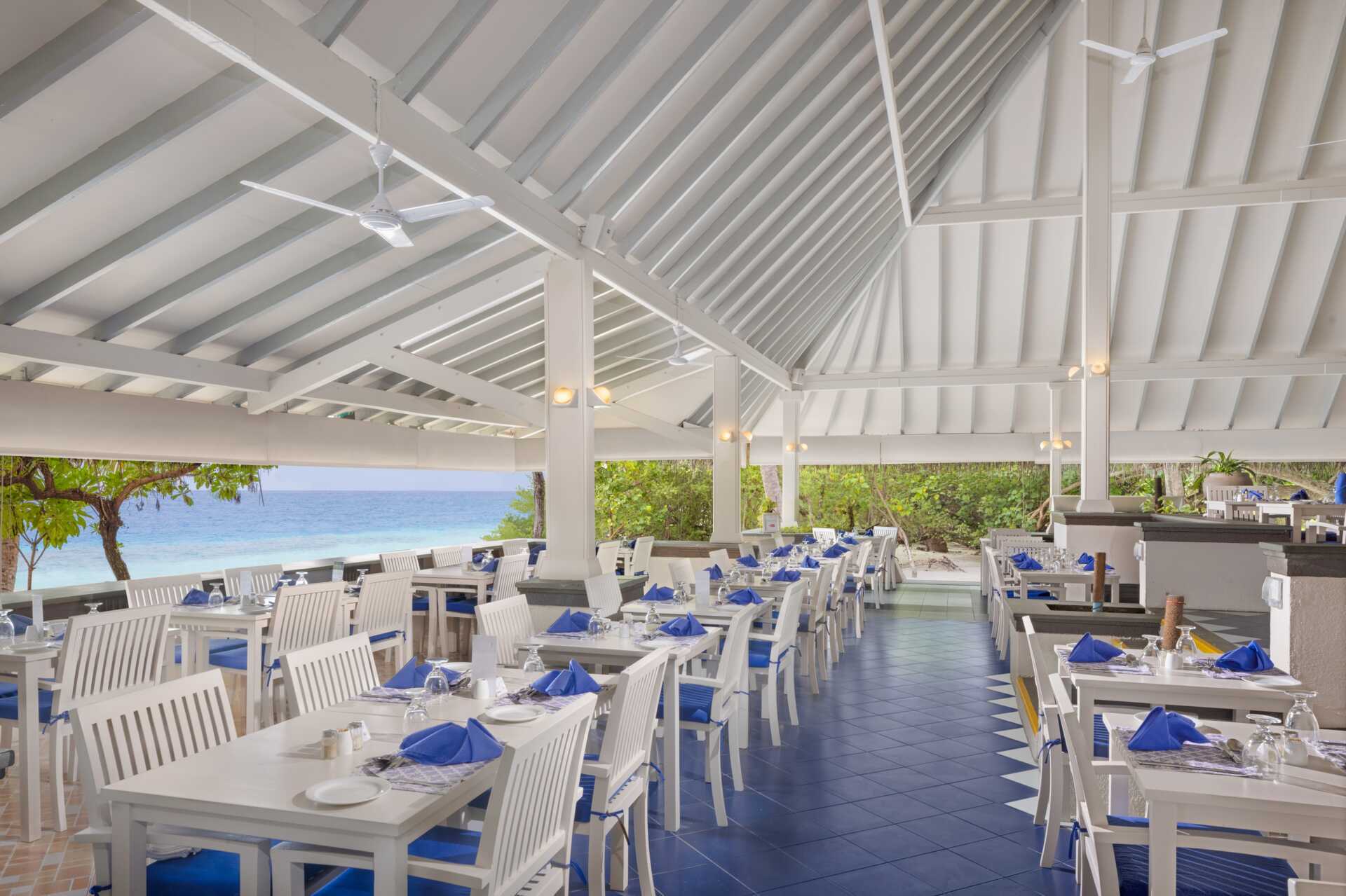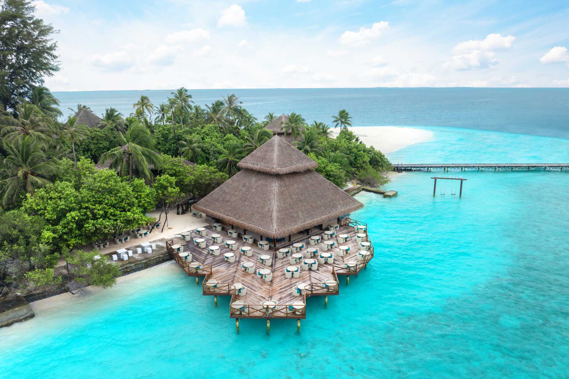 Siamo stati in luna di miele in una delle Water Villas di questa isoletta piccolina ma incantevole, nellatollo di Male sud. Il prezzo nelle Water Villas è notevolmente più alto rispetto ai Beach Bungalows ma è giustificato , ovvero la nostra impressione è che possa valere la pena di concedersi qualche lusso in più . Le stanze sono pulite, molto confortevoli , ben tenute ed accessoriate , con vista meravigliosa e discesa al mare privata vicino alla barriera. Nell’isola ci sono anche belle spiaggette dalla sabbia bianca finissima. Il servizio di pulizia in camera viene svolto di continuo in modo impeccabile e con estrema discrezione . Il personale è gentile e disponibile. I pasti sono buoni , cibo di qualità e varietà per ogni gusto . C’è un servizio continuo e gratuito di cocktail e mocktail in due bar . È disponibile l’attrezzatura da snorkeling (maschera e pinne ) gratuitamente durante il soggiorno . Non c’è nè palestra né piscina . Ci sono gli animatori per attività diurne e serali , disponibili ma non invadenti. Possibilità di escursioni varie a pagamento, relativamente care . Qualche piccola difficoltà per farsi capire con l’inglese dal personale .