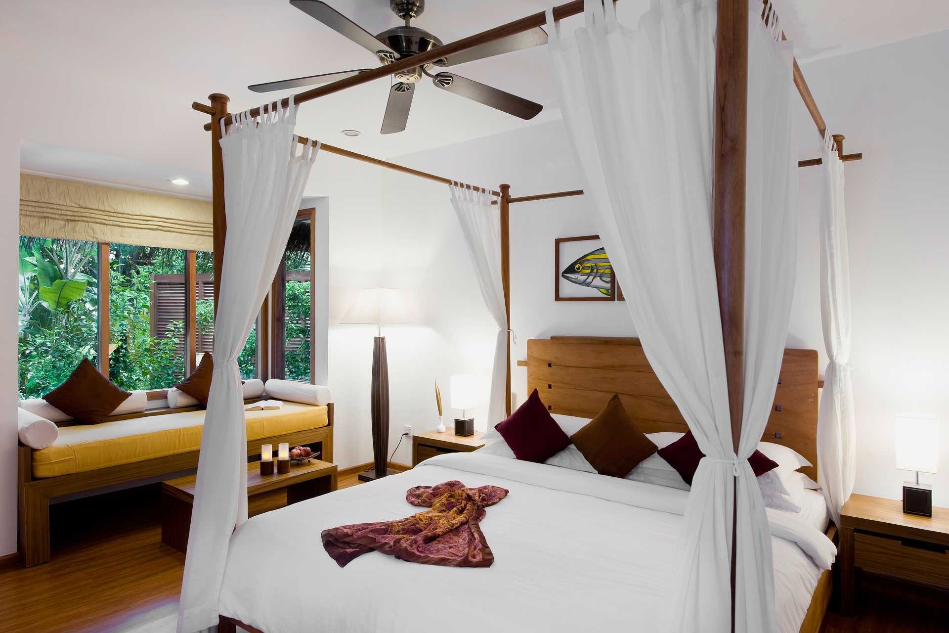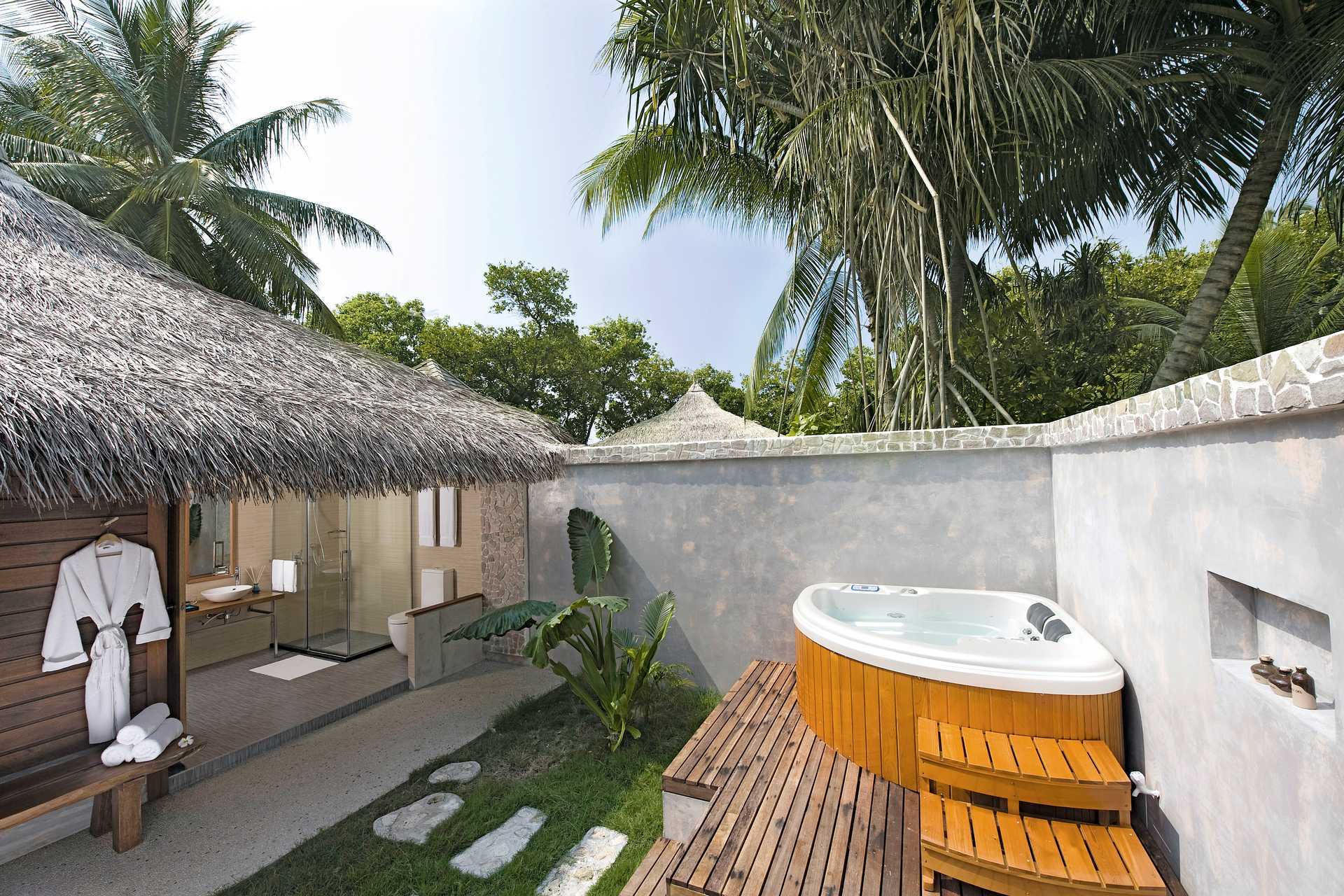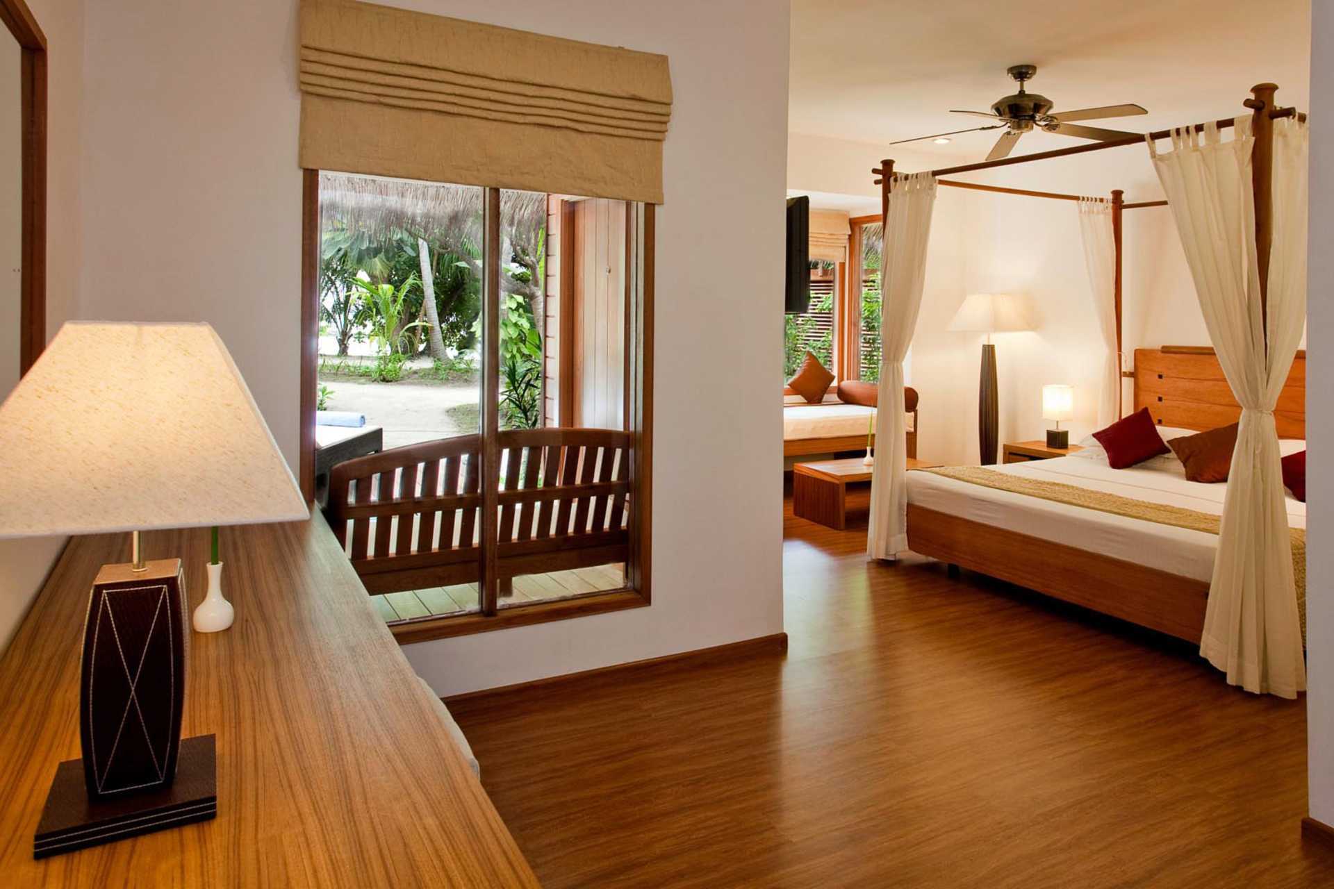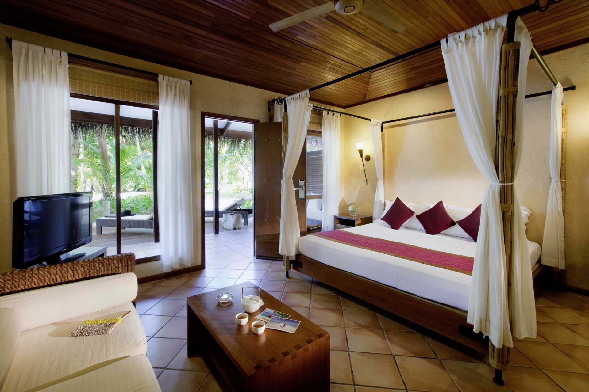 Kahden hengen huoneet bungaloweissa, jotka sijaitsevat saaren trooppisen vehreyden keskellä. Puinen terassi bungalowin edessä, jossa on päiväpeti ja aurinkotuoleja. Parivuode ja päiväpeti. Maksuton wifi, ilmastointi ja tallelokero. Kattotuuletin. Minibaari lisämaksulla. Vedenkeitin, kahvia ja teetä. Tv kansainvälisillä kanavilla. Huoneessa on allas- ja rantapyyhkeet. Kylpytakit. Hiustenkuivain. Kylpyhuone, joka on osittain ulkoilmassa, jossa suihku, ulkoporeallas ja wc. Siivous 7 krt/viikko.