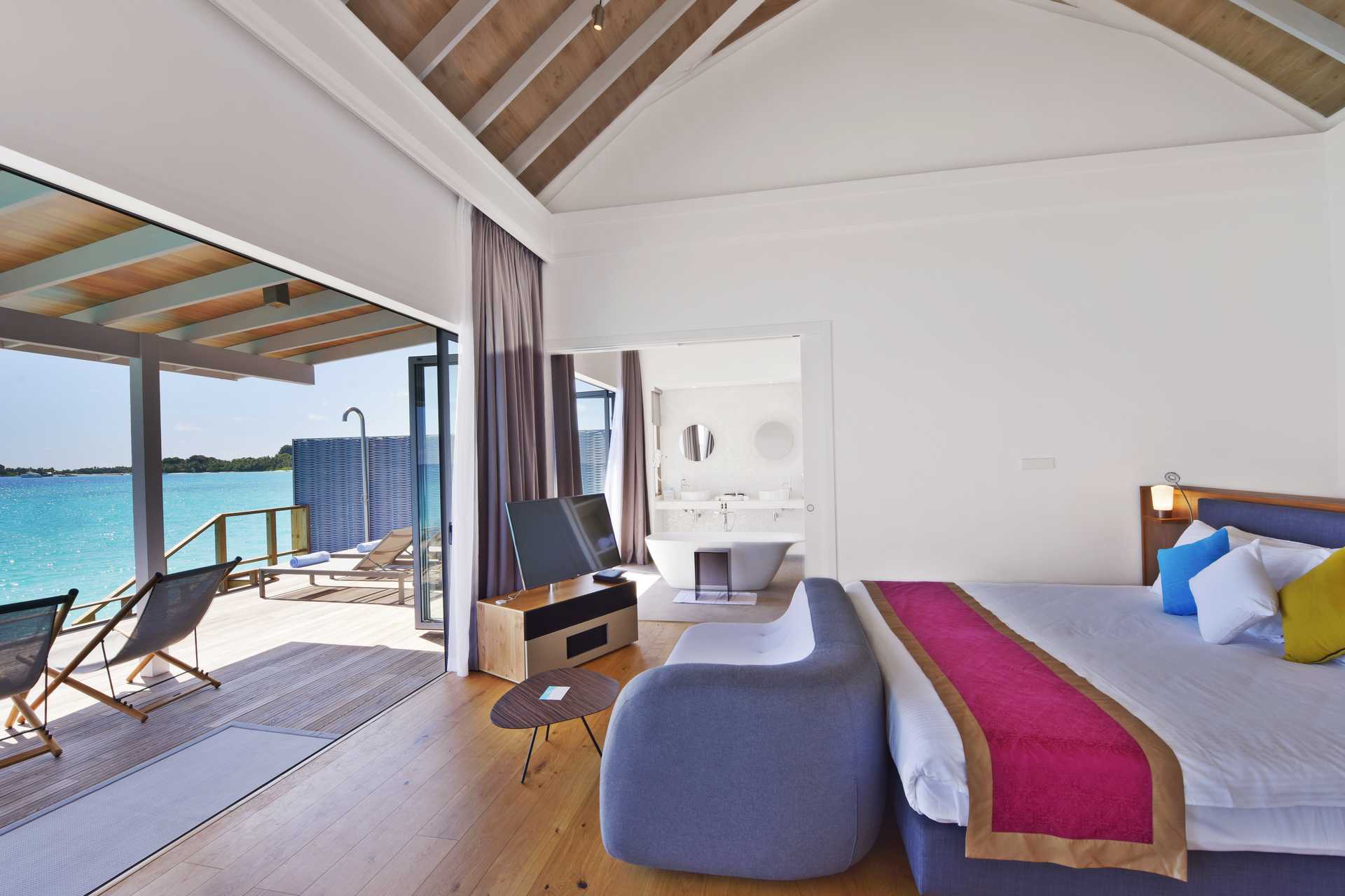 Water Villa Deluxe on rakennettu paalujen päälle turkoosissa laguunissa. Puisella terassilla on panoraamanäkymät merelle, aurinkotuoleja ja -varjoja, sekä portaat alas Intian valtamereen. Parivuode ja päiväpeti. Maksuton wifi, ilmastointi ja tallelokero. Kattotuuletin. Viininjäähdytin, jossa viinejä ympäri maailmaa, ja minibaari lisämaksusta. Espressokone. TV kansainvälisillä kanavilla. Silitysrauta ja -lauta. Pelastusliivit sekä allas- ja rantapyyhkeet saatavilla villassa. Kylpytakit. Hiustenkuivaaja. Kylpyhuone on osittain ulkoilmassa ja suihku, kylpyamme ja wc. Siivous 7 kertaa/viikko. Ota mukaasi omat uimakengät, laiturit villalle ja puinen terassi ovat hyvin kuumia auringon paisteessa.