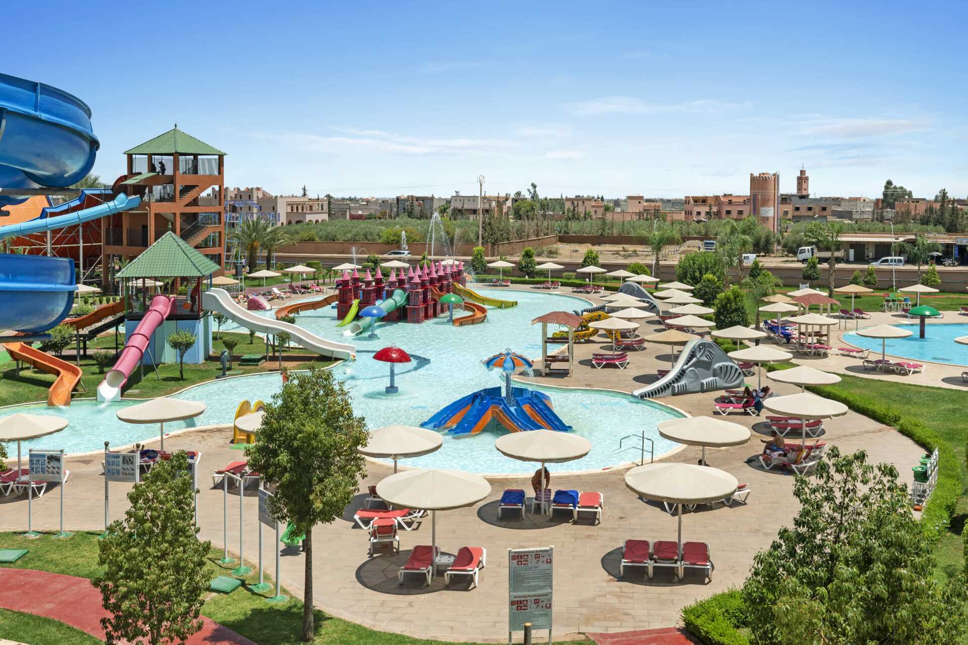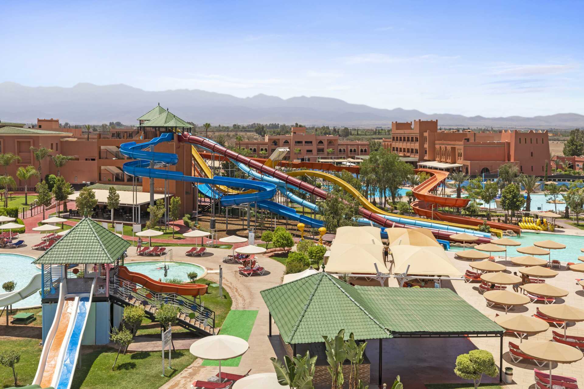Pickalbatros Aqua Fun Clubilla on Marrakechin suurin vesipuisto, jossa on 14 allasta! Hotelli sopii sinulle jos haluat Marrakechin ja Marokon tutkimusmatkasi välissä haluat hotellin, jossa on aktiviteetteja mutta jossa on aikaa myös rentoutumiseen ja hyvään ruokaan. Kaukana voit nähdä Atlasvuoret ja lomasi upeissa maisemassa voi alkaa.