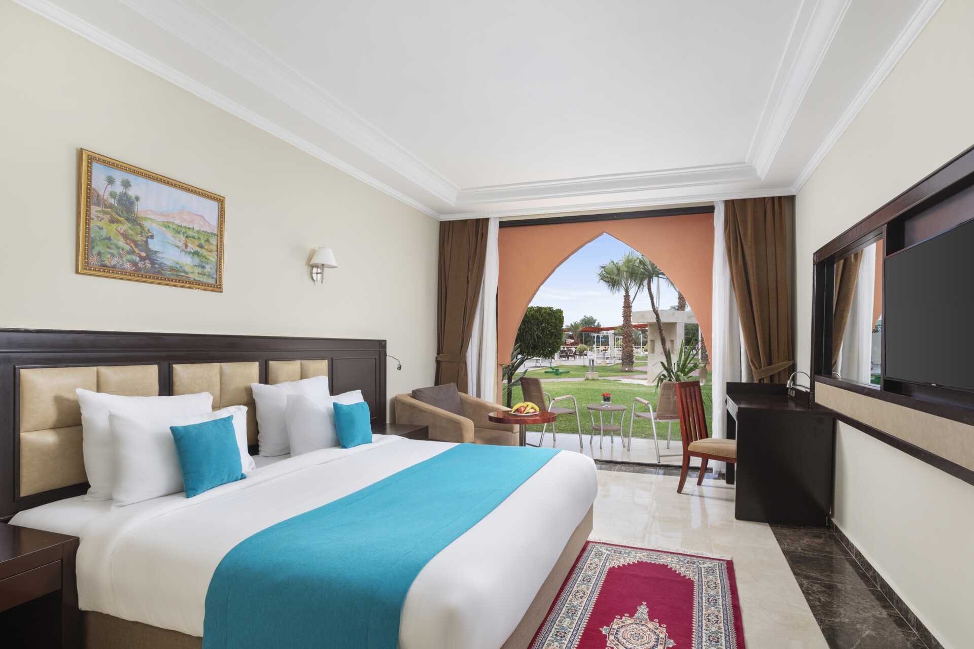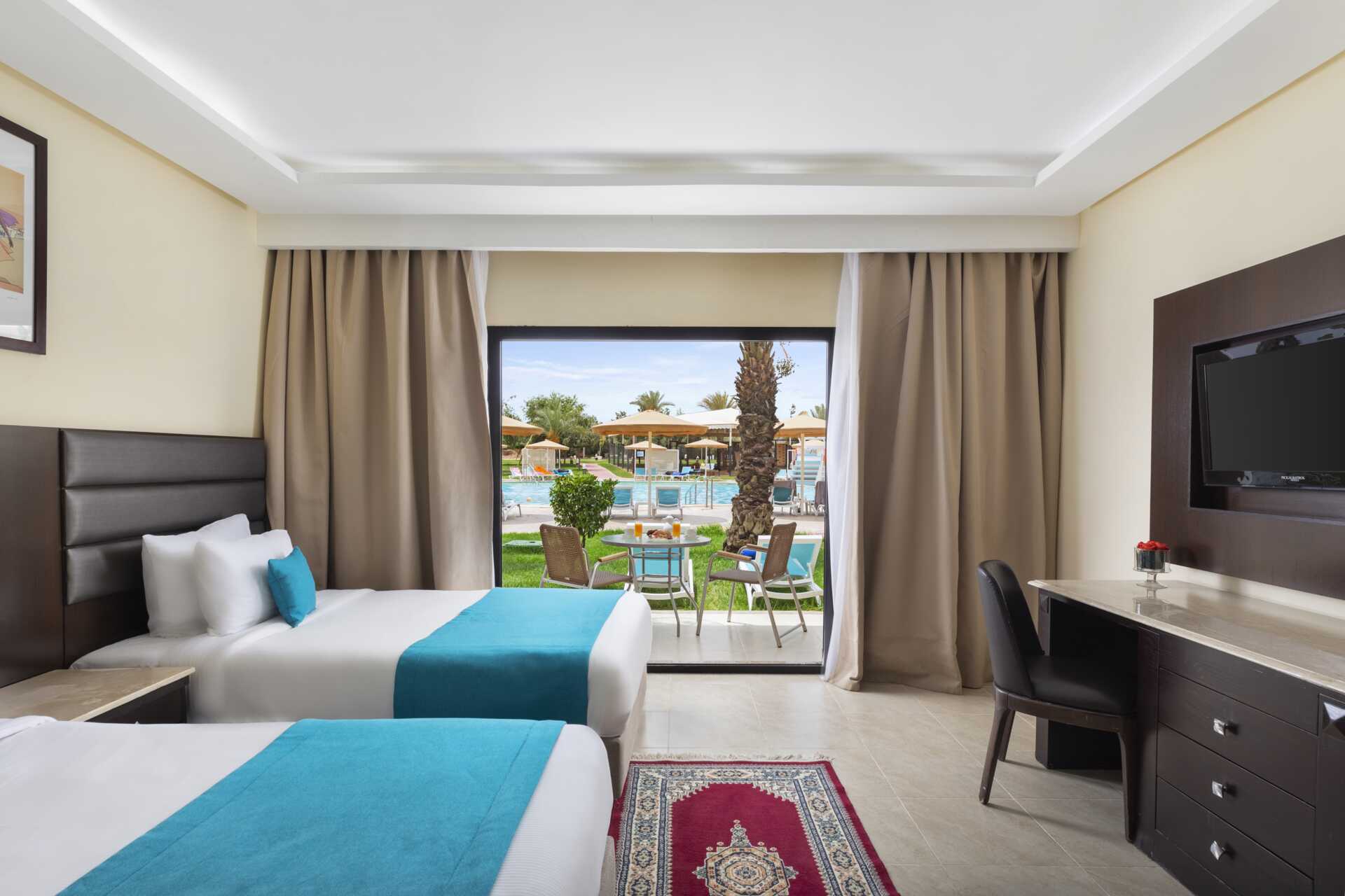 Kahden hengen huone parvekkeella, osassa allasnäköala. Maksuton wifi, ilmastointi ja tallelokero. Minibaari – vesipullo sisältyy hintaan ja täytetään päivittäin. Tv kansainvälisillä kanavilla. Hiustenkuivain. Kylpyhuoneessa suihku ja wc. Alle 2-vuotiaat lapset lasketaan lisävuoteella majoittuviksi henkilöiksi. Siivous 7 krt/viikko.