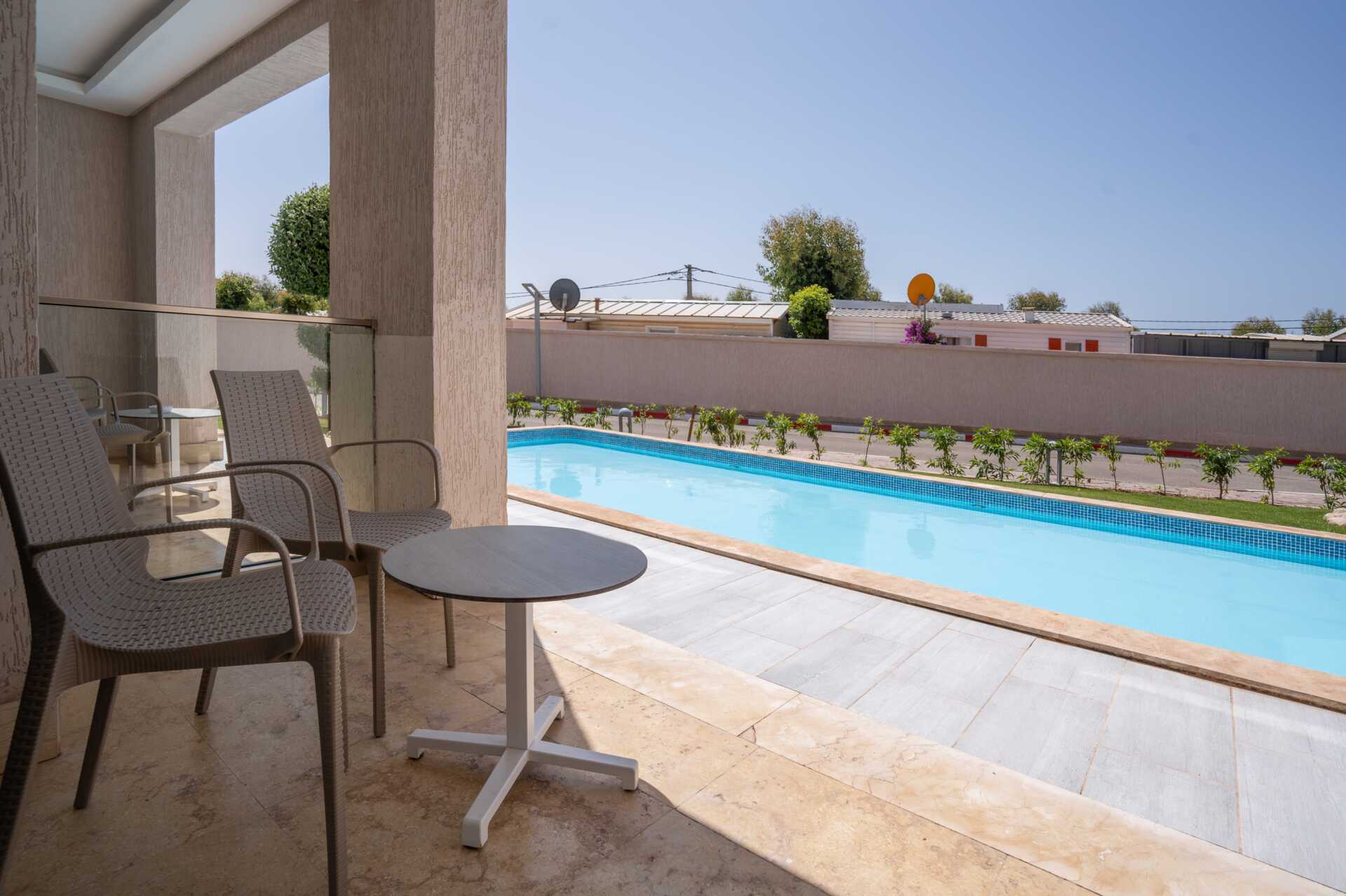 Deluxe-sviitti, jossa on maaterassi ja pääsy jaetulle altaalle. Parivuode tai kaksi yhden hengen vuodetta. Maksuton wifi, ilmastointi ja tallelokero. Minibaari - sisältyy hintaan ja täytetään joka päivä virvoitusjuomilla. Vedenkeitin, kahvia ja teetä. Kahvinkeitin - kapselit sisältyy. Tv kansainvälisillä kanavilla. Hiustenkuivain. Suihku ja wc. Siivous 7 krt/viikko.