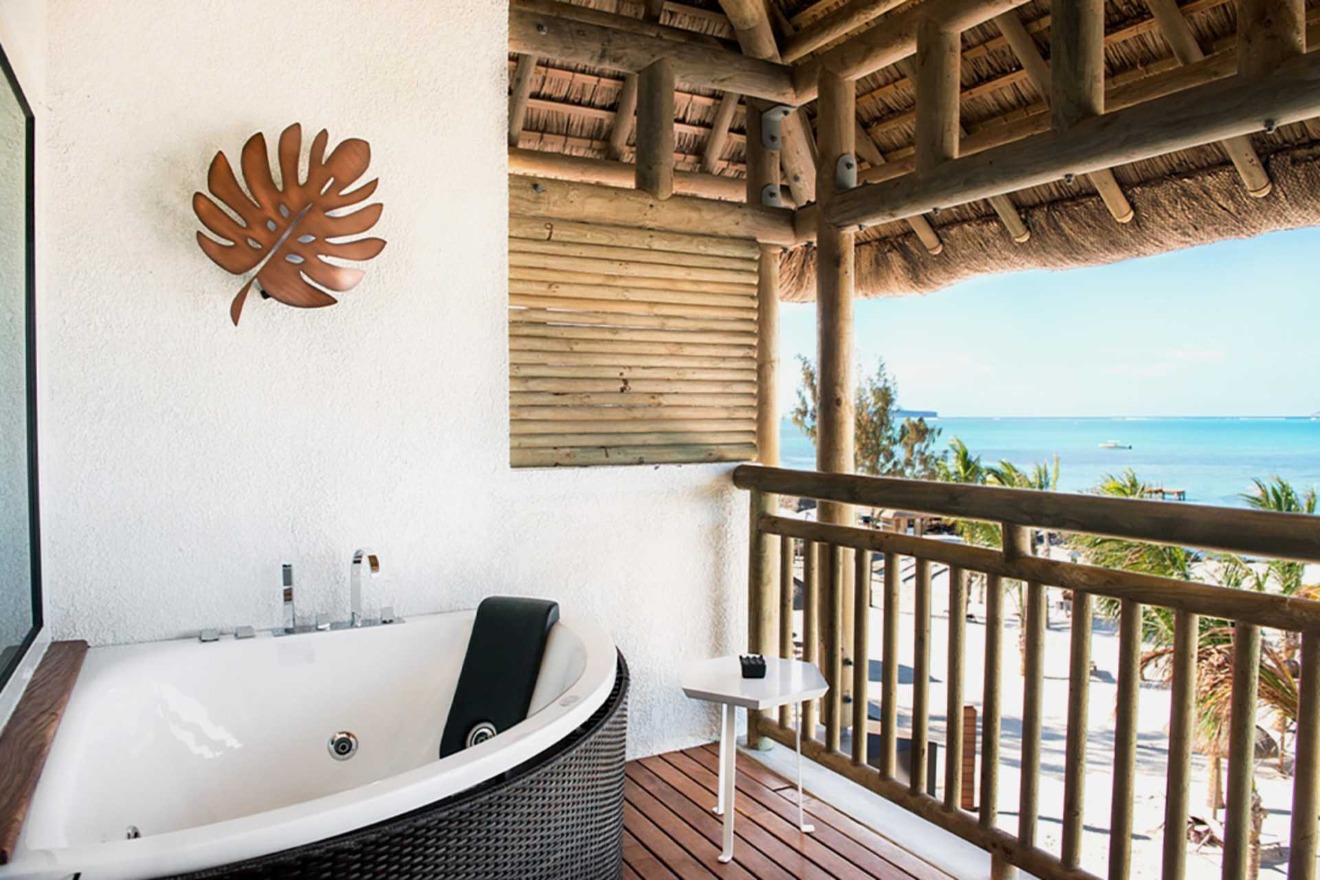 Sviitti parvekkeella ja merinäköalalla. Tässä huonetyypissä ikäraja on 18-vuotta. Parvekkeella on poreallas ja sohva. Parivuode. Maksuton wifi, ilmastointi ja tallelokero. Kattotuuletin. Minibaari lisämaksusta. Vedenkeitin, kahvia ja teetä. Kahvinkeitin. Tv kansainvälisillä kanavilla. Hiustenkuivain. Kylpyhuoneessa suihku ja wc. Siivous 7 krt/viikko.