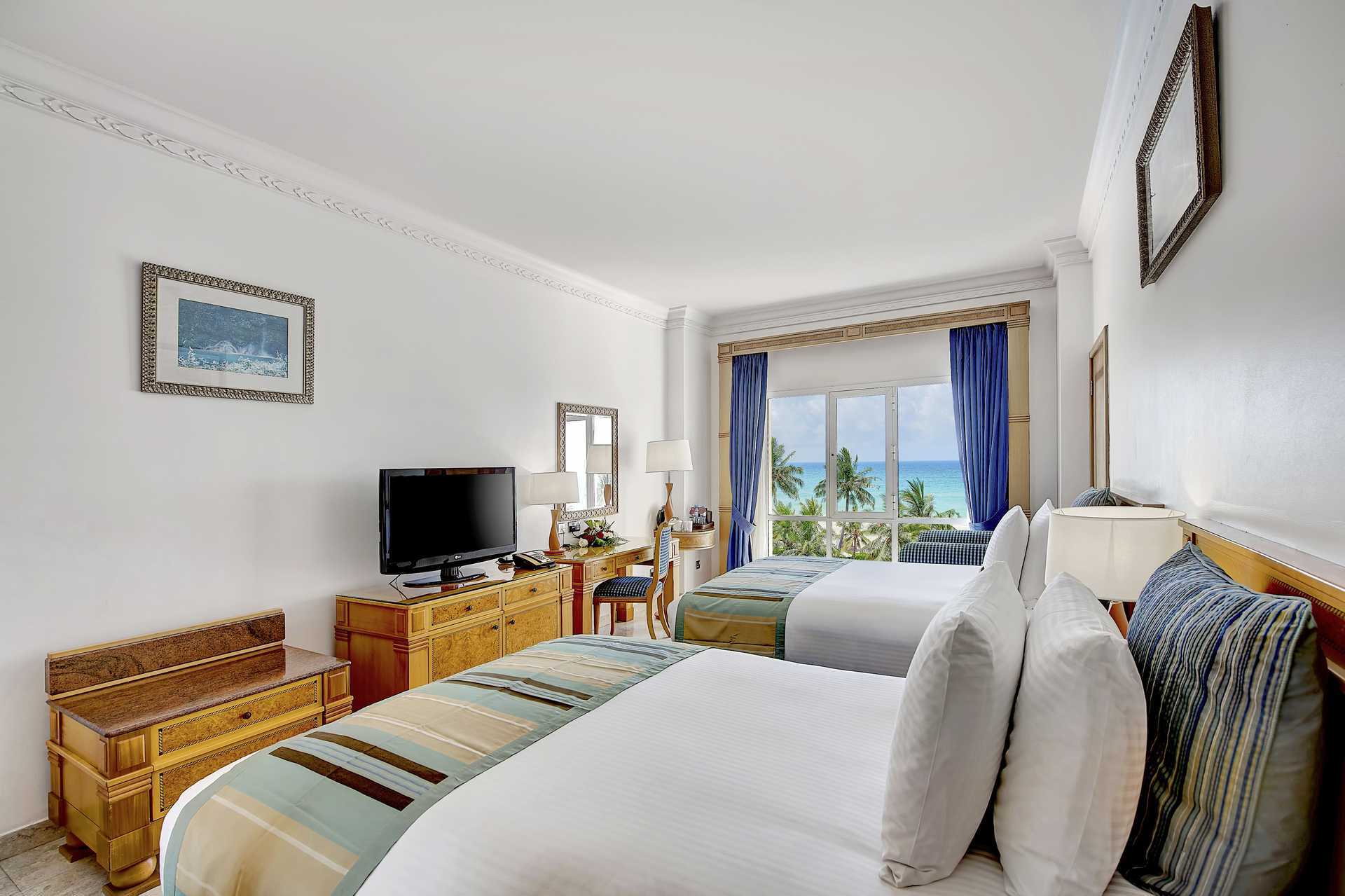Kahden hengen huone merinäköalalla, mutta ilman ulkotilaa. Parivuode tai kaksi yhden hengen sänkyä. Lisävuodemahdollisuus vuodesohvasta. Maksuton wifi, tallelokero ja ilmastointi. Minibaari ja vedenkeitin sekä kahvia ja teetä. Tv kansainvälisillä kanavilla. Kylpytakit. Hiustenkuivain. Kylpyamme tai suihku ja wc. Siivous 7 krt/viikko. Alle 2-vuotiaat lapset lasketaan lisävuoteella majoittuviksi henkilöiksi.