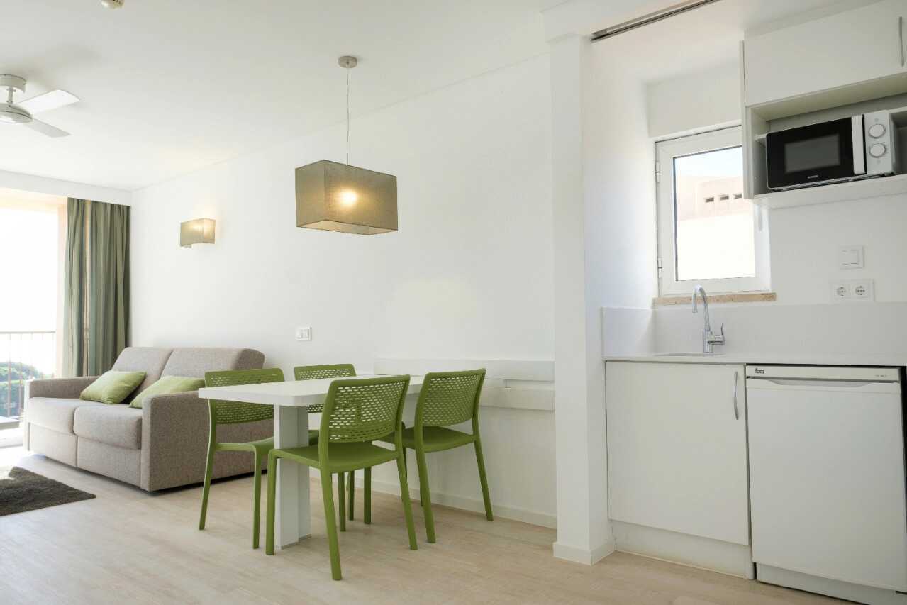 Kaksio parvekkeella. Makuuhuone sekä yhdistetty olohuone ja minikeittiö. Kaksi yhden hengen sänkyä. Lisävuodemahdollisuus vuodesohvalla. Minikeittiö, jossa keittolevyt, jääkaappi, vedenkeitin, leivänpaahdin, mikro ja yksinkertainen keittiövarustus. Maksuton wifi, ilmastointi ja tallelokero. Tv kansainvälisillä kanavilla. Hiustenkuivain. Amme ja wc. Siivous 7 krt/viikko.