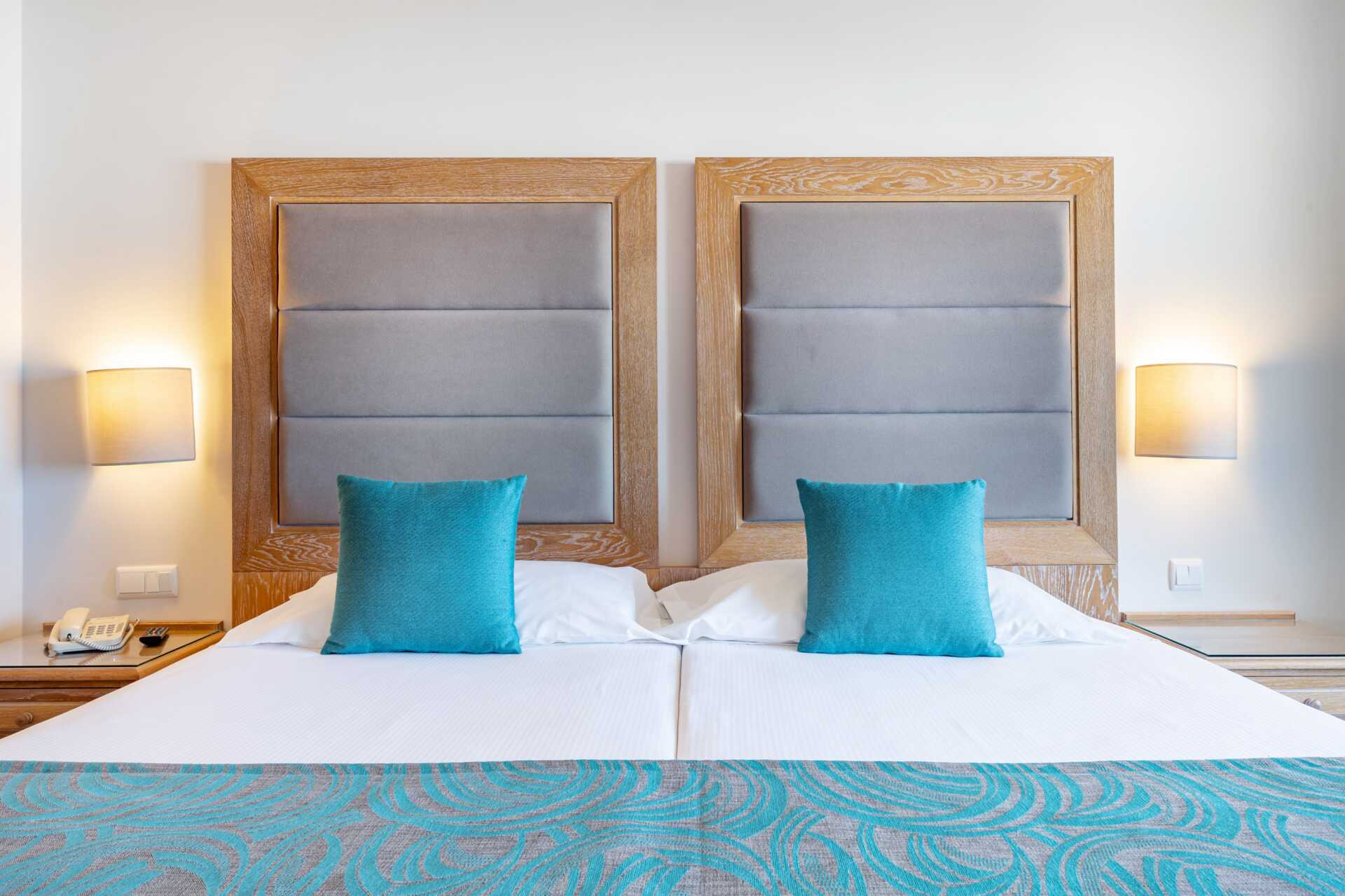 Kahden hengen huone parvekkeella, osassa allasnäköala. Kaksi yhden hengen sänkyä. Maksuton wifi, ilmastointi ja tallelokero. Kattotuuletin. Minibaari. Tv kansainvälisillä kanavilla. Hiustenkuivain. Amme ja wc. Siivous 7 krt/viikko.