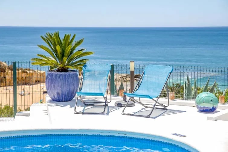 Astu ulos yksityiselle kahden uima-altaan keitaalle, jossa pienempi uima-allas laskeutuu kauniisti suurempaan pyöreään uima-altaaseen. Lukuisat aurinkotuolit kutsuvat rentoutumaan, ja pöytätennispöytä ja tiilestä rakennettu grilli tuovat ripauksen virkistystä ulkoilmatunnelmaan. Uima-allasalueelta suoraan hiekkarannalle johtavat kätevät portaat korostavat tämän lomapaikan rannikon viehätystä.